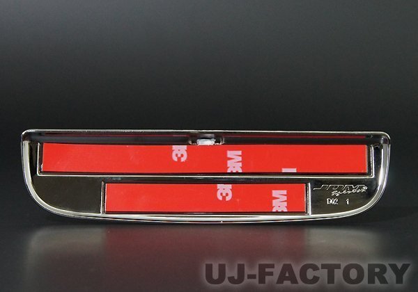| 【 商品説明 】 ●ブラッククロームでバックドアハンドルに貼るだけ簡単装着! インサイドエッジが多重反射の輝きで渋く高級感漂うイメージに仕上げます。 ●手が触れる部分を曲面処理する事により、開閉時ケガをする心配がありません。 ●樹脂成型ならではの造形美。光沢・強度に優れたABS樹脂製、両面テープ付き。