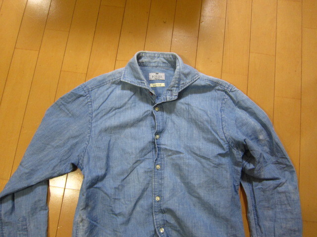 SCROLL ダンガリーシャツ 長袖シャツ サイズMです。実寸より判断下さい。肩幅約42cm、袖丈約58cm、着丈約68cm、身幅約49cmです。中古品につき、神経質な方は入札をお控えください。ノークレーム ・ノーリターンでお願いします。発送は定形外または、ヤフネコパックを予定しています。| 出价者 | 信用 | 价格 | 时间 |
