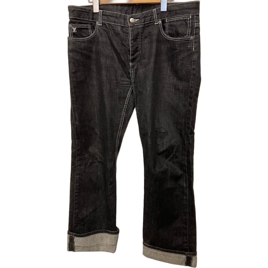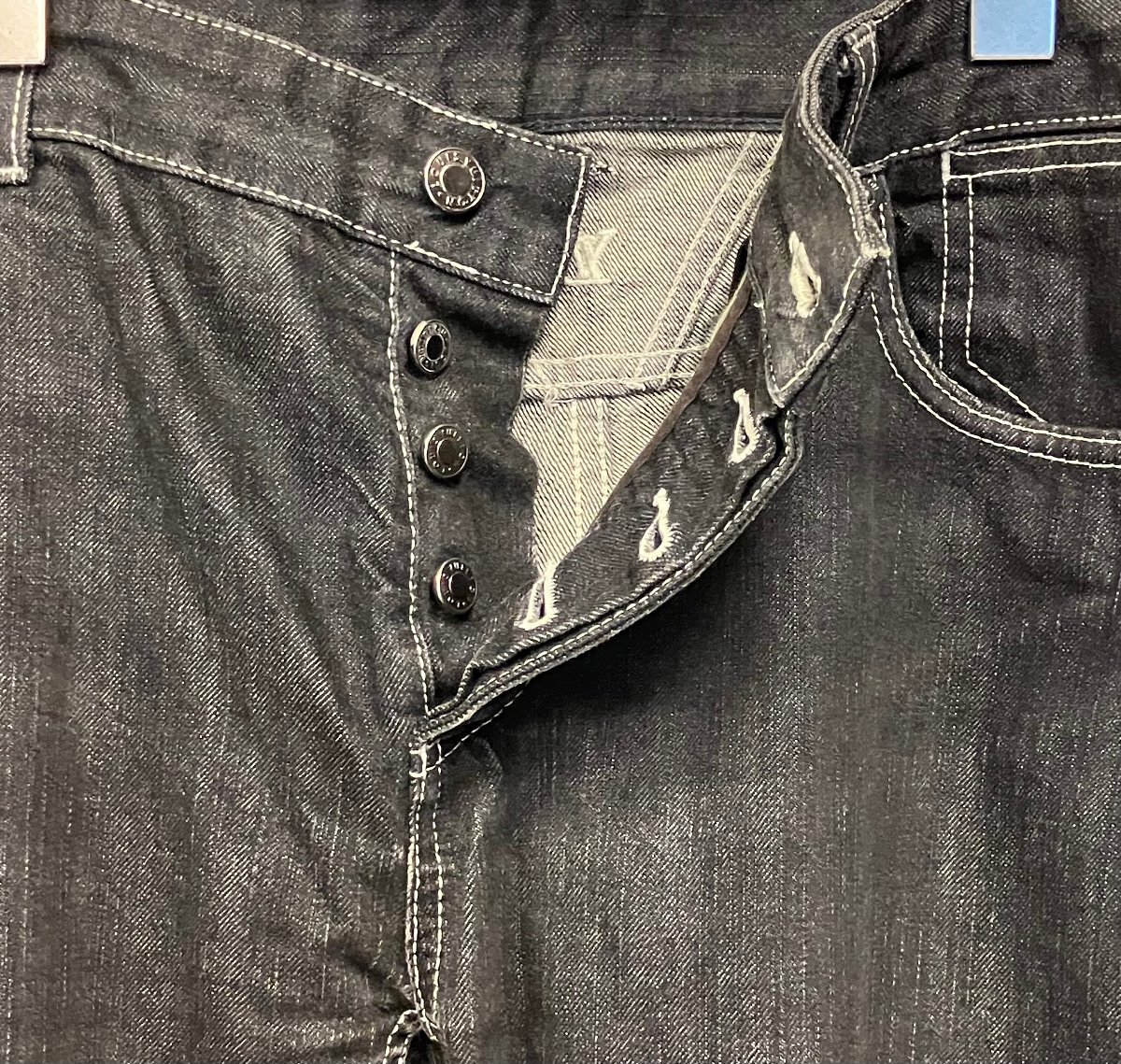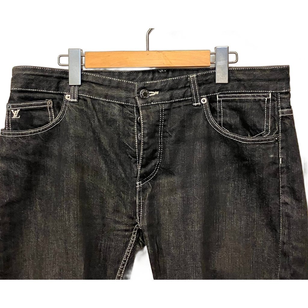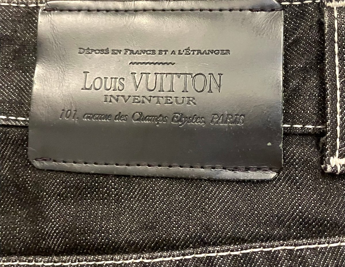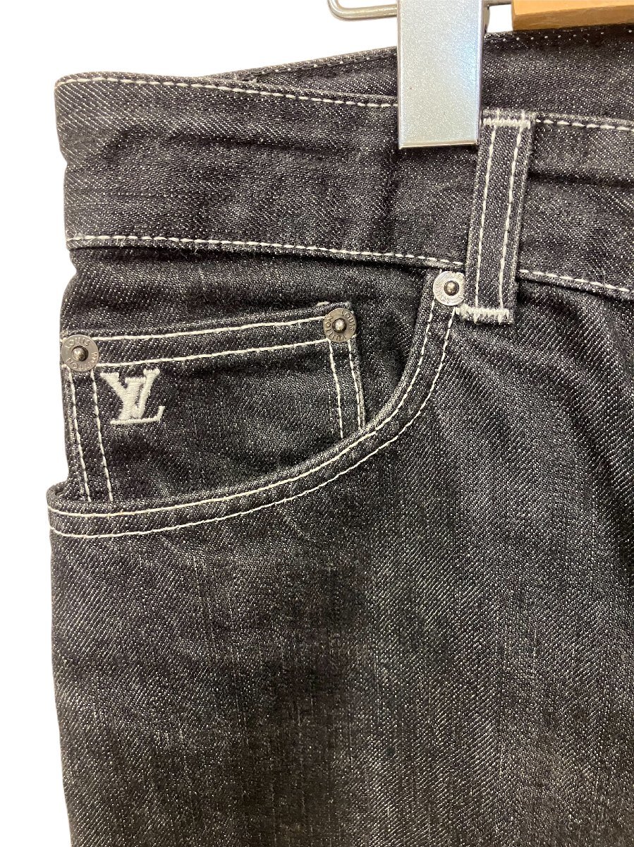 商品名:qoj.ZB004 LOUIS VUITTON ルイヴィトン ブラック デニムパンツ メンズ コットン100% LV刺繍入り 44サイズ