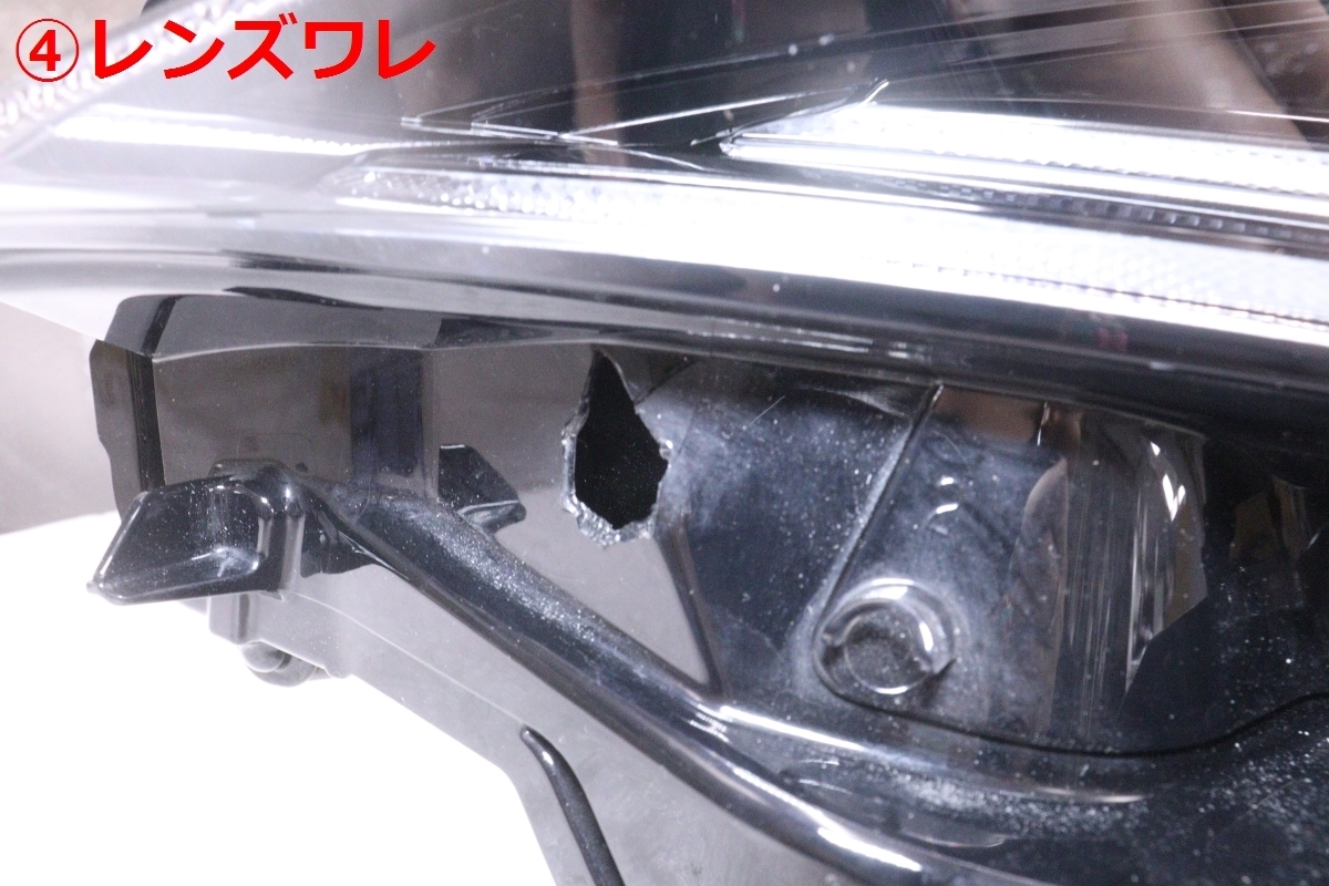 | 全体 | 洗車キズ、細かい飛び石キズ、大きめ飛び石キズ多少 ※レンズ内に液ダレや水滴跡がある場合がございますが、性能上問題ありません。 |