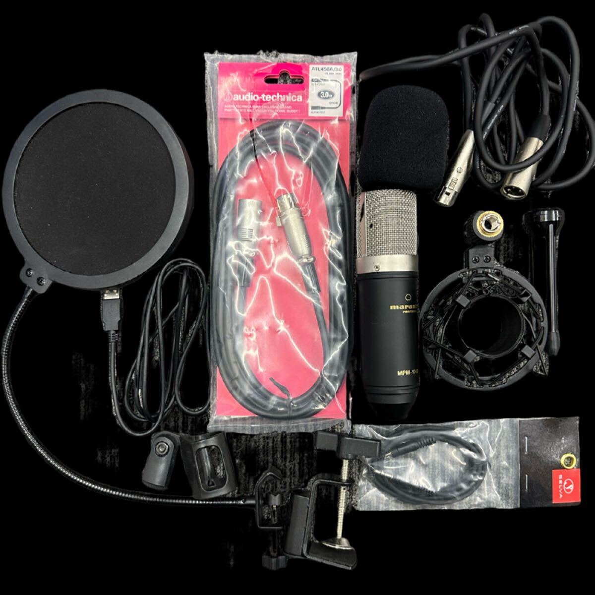 付属品 AG03 mk2用クイックガイド・marantz MPM-1000用取り扱い説明書・USBケーブル・ウィンドスクリーン・マイクケーブル・ショックマウント(マイクホルダー)・マイクケーブル