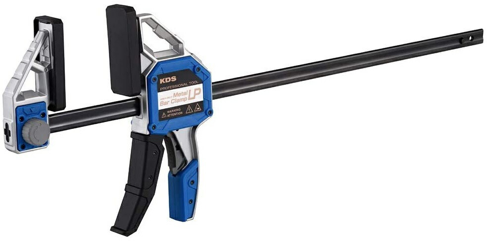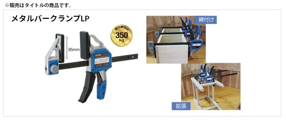 ムラテックKDSメタルバークランプLP MBC-450LP■製品概要・特徴・片手で使えるバークランプ・締付け力 350kg 堅牢なアルミボディ・スプリング内蔵で 仮締め・本締めの調節が可能■用途・木工作業での締付/拡張に・木材加工時の作業台への固定に・生産加工現場での接着や仮止め、作業台への固定に■本体材質・アルミダイキャスト・ナイロングラスファイバー
