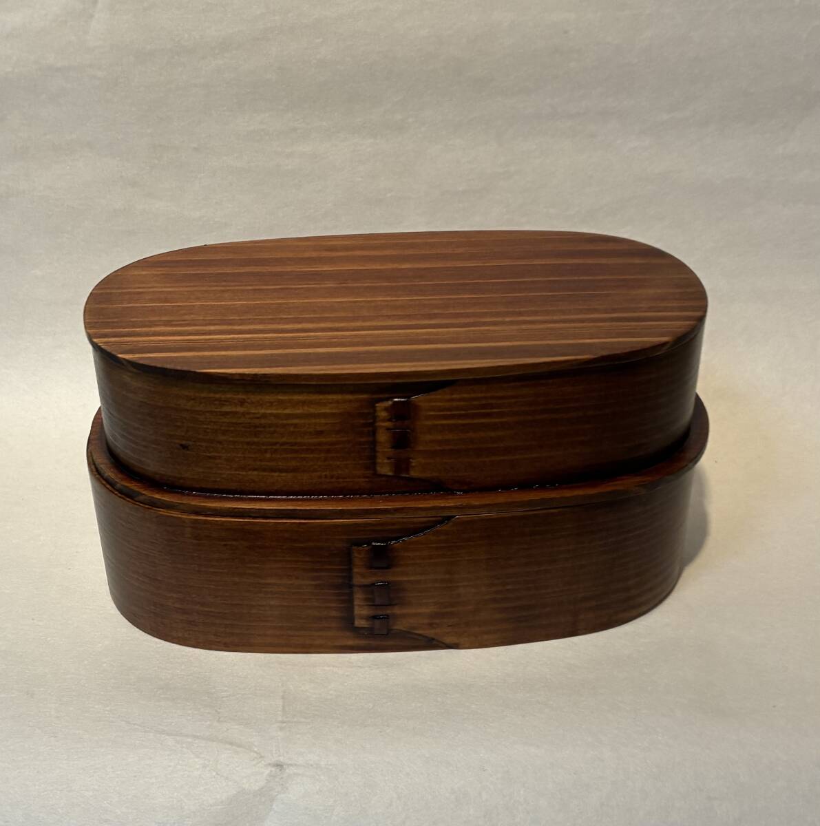 曲げわっぱ 小判 入り子 二段 弁当箱 拭き漆■天然木・本漆■【新品】