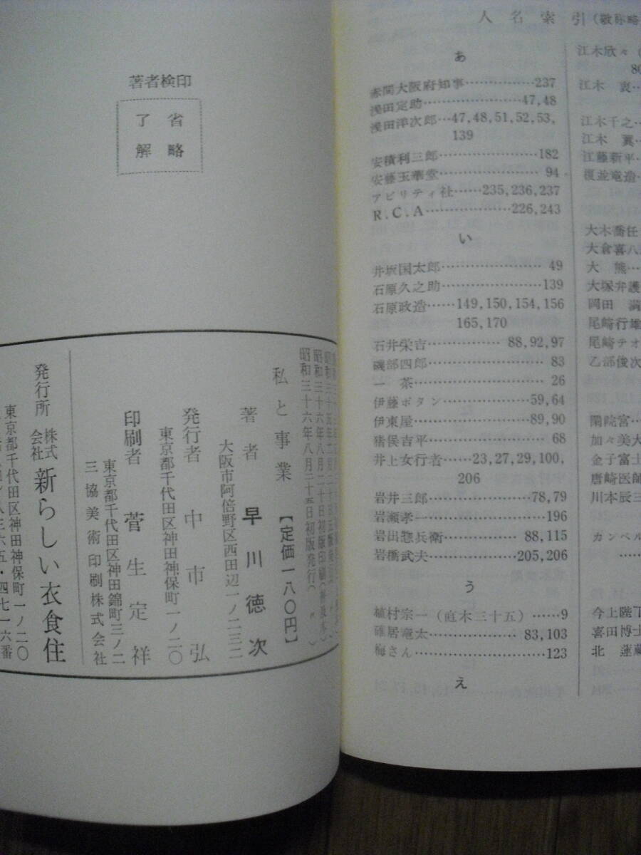 | 早川徳次 私と事業 昭和36年普及版初版 株式会社新しい衣食住 絶版本 シャープ | |