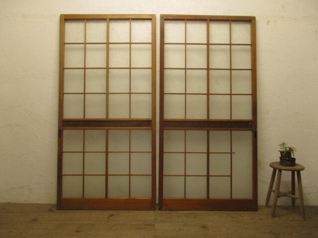 商品情報 | ■商品詳細■ レトロな古い木枠ガラス戸、2枚セットです。 長年使い込まれた味わいのある品です。 ガラスはデザインガラスと粒の小さいダイヤガラスを使用しています。 一般のご家庭はもちろん、レトロな店舗什器にもお勧めです。 経年の傷や欠け、染みや桟の欠品等がありますが、使用には問題ありません。 古い物とご理解いただければ幸いです。 ご不明な点などありましたら、質問欄にてお願いします。 ■サイズ■ 全体(最大値) (H 176,5cm×W 87,5cm×D 3cm) ×2枚 竪框 4cm 多少の誤差はご了承下さい。 |
