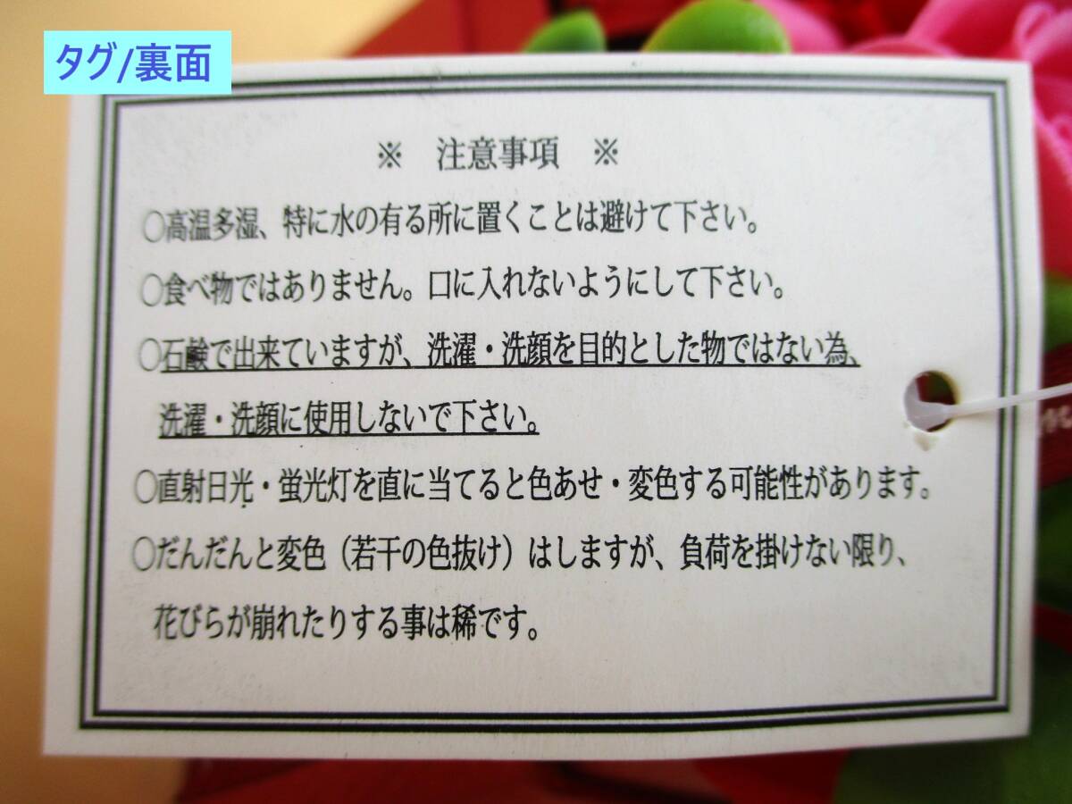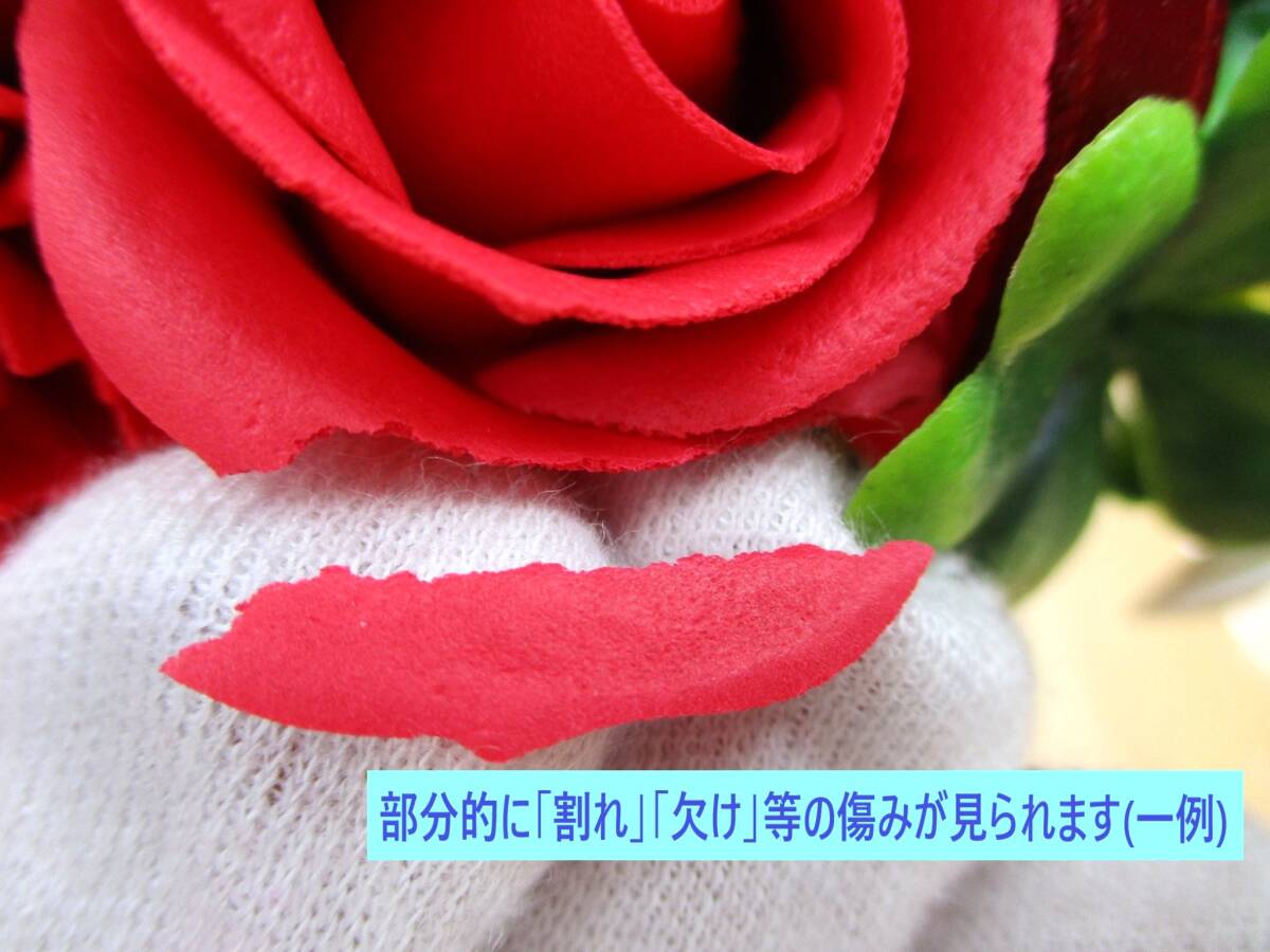 | 撮影・確認の為、 外箱・内袋を開封しましたが、未使用品です。 石けんで出来た 枯れない お花の 置物です。 長期保存品につき、ソープの香りが 弱くなっている可能性があります。 また、一部パーツに割れ・欠けが見られます。 この点より「訳あり」として出品いたします。 以下の商品説明をよくご覧になってから、 ご検討をお願い致します。 神経質な方、完品をご希望の方は、 御入札をご遠慮ください。 【商品内容】 シャボンフラワー プチハーモニー レッド (SBL-115S) サイズ: 容器(厚紙製) 約 幅12×奥行10×高さ14(cm) 花を含めたサイズ 約 幅17×奥行15×高さ14(cm) 商品重量: 165g その他: 海外製/メーカー等の詳細は不明 倉庫にての長期保存品です 外箱には傷みがみられます *状態等は、画像にてご確認ください *実際の商品の色味とは異なる場合があります *サイズは、当方のメジャーによる 大まかな数値です *サイズ参考に コーヒーボトル小缶を置いた状態で 撮影した画像をあげています 参考にどうぞ(画像:10) 【状態等】 ・撮影・確認の為、 外箱・内袋を開封しましたが、未使用品です。 ・外箱には、スレ・キズ・破れ・角の潰れなどの 傷みがありますが、 あくまでも 商品保護のためのものとご認識下さい。 外箱も美品をご希望の方はご遠慮ください。 ・長期保存品につき、内部への埃の入り込み等、 御容赦下さい。 ・一部の花びらパーツに、割れが見られます。 画像に一例をあげておきますので、 参考になさった上で、ご検討下さい。 (参考:画像9) 【補足】 ・配送時の振動などで、 全体の形が崩れる可能性があります。 ・ソープの香りや色合いは 永久的な物ではありません。 経年により、香りの薄れや 色あせが起こる場合があります。 ・発送は、商品保護用外箱に 緩衝材を巻き付けた状態で行う 場合があります。 (発送伝票は緩衝材に直貼りです) 以上の点より「訳あり」扱い品として 安価にて出品いたします。 ご承知をいただける方のみ、 ノークレーム・ノーリターンにて ご検討下さい。 | ||