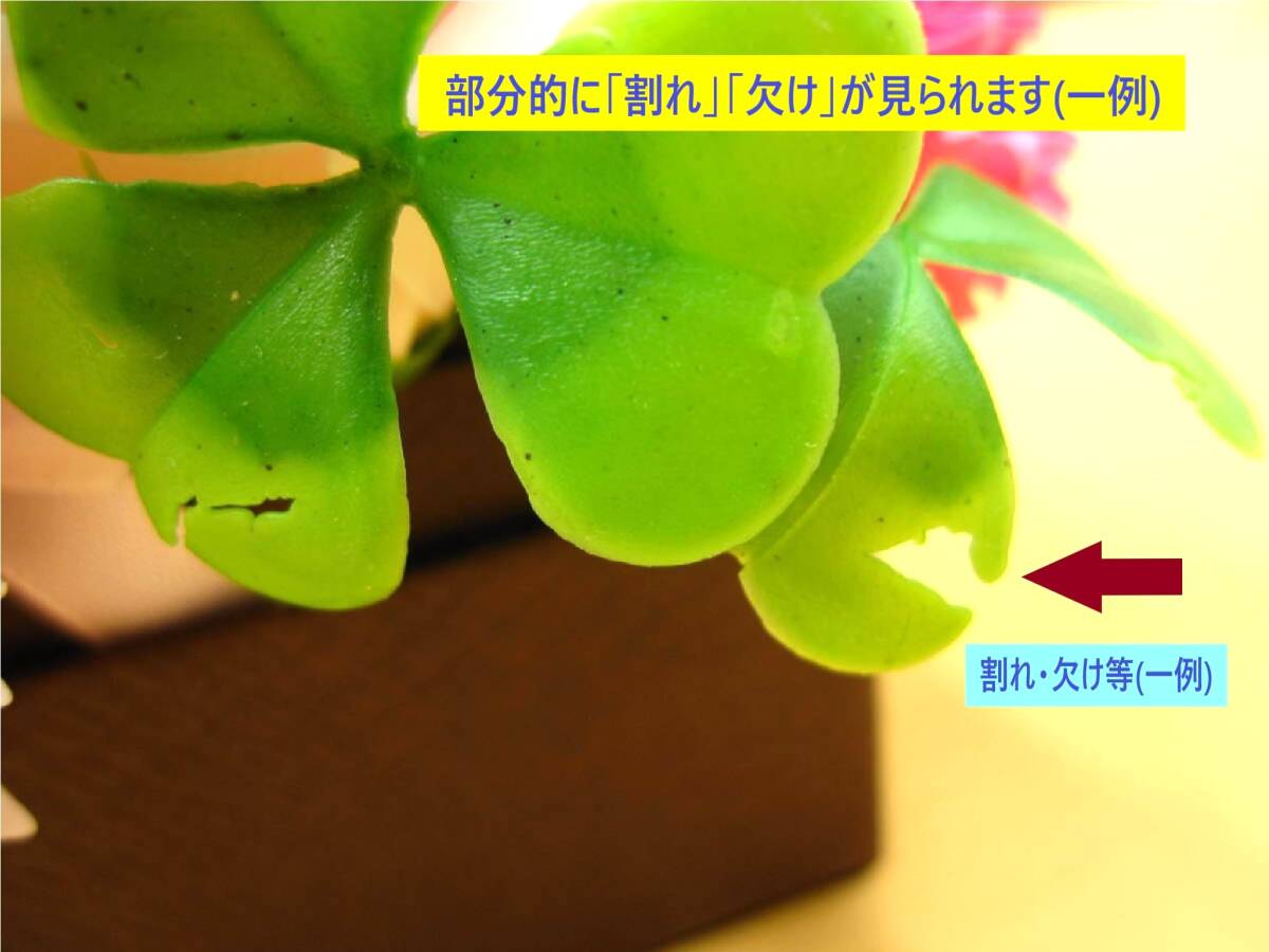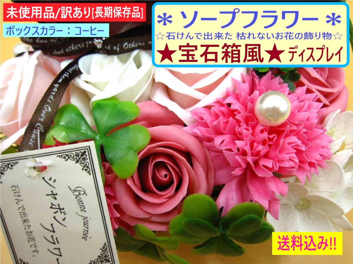 | 撮影・確認の為、 外箱・内袋を開封しましたが、未使用品です。 石けんで出来た 枯れない お花の 置物です。 長期保存品につき、ソープの香りが 弱くなっている可能性があります。 また、一部パーツに割れ・欠けが見られます。 この点より「訳あり」として出品いたします。 以下の商品説明をよくご覧になってから、 ご検討をお願い致します。 神経質な方、完品をご希望の方は、 御入札をご遠慮ください。 【商品内容】 シャボンフラワー プチハーモニー コーヒー (SBL-115S) サイズ: 容器(厚紙製) 約 幅12×奥行10×高さ14(cm) 花を含めたサイズ 約 幅17×奥行14×高さ14(cm) 商品重量: 165g その他: 海外製/メーカー等の詳細は不明 倉庫にての長期保存品です 外箱には傷みがみられます *状態等は、画像にてご確認ください *実際の商品の色味とは異なる場合があります *サイズは、当方のメジャーによる 大まかな数値です *サイズ参考に コーヒーボトル小缶を置いた状態で 撮影した画像をあげています 参考にどうぞ(画像:10) 【状態等】 ・撮影・確認の為、 外箱・内袋を開封しましたが、未使用品です。 ・外箱には、スレ・キズ・破れ・角の潰れなどの 傷みがありますが、 あくまでも 商品保護のためのものとご認識下さい。 外箱も美品をご希望の方はご遠慮ください。 ・長期保存品につき、内部への埃の入り込み等、 御容赦下さい。 ・クローバーパーツ(プラスチック製)に、 割れ・欠けが複数見られます。 画像に一例をあげておきますので、 参考になさった上で、ご検討下さい。 (参考:画像9) 【補足】 ・配送時の振動などで、 全体の形が崩れる可能性があります。 ・ソープの香りや色合いは 永久的な物ではありません。 経年により、香りの薄れや 色あせが起こる場合があります。 ・発送は、商品保護用外箱に 緩衝材を巻き付けた状態で行う 場合があります。 (発送伝票は緩衝材に直貼りです) 以上の点より「訳あり」扱い品として 安価にて出品いたします。 ご承知をいただける方のみ、 ノークレーム・ノーリターンにて ご検討下さい。 | ||