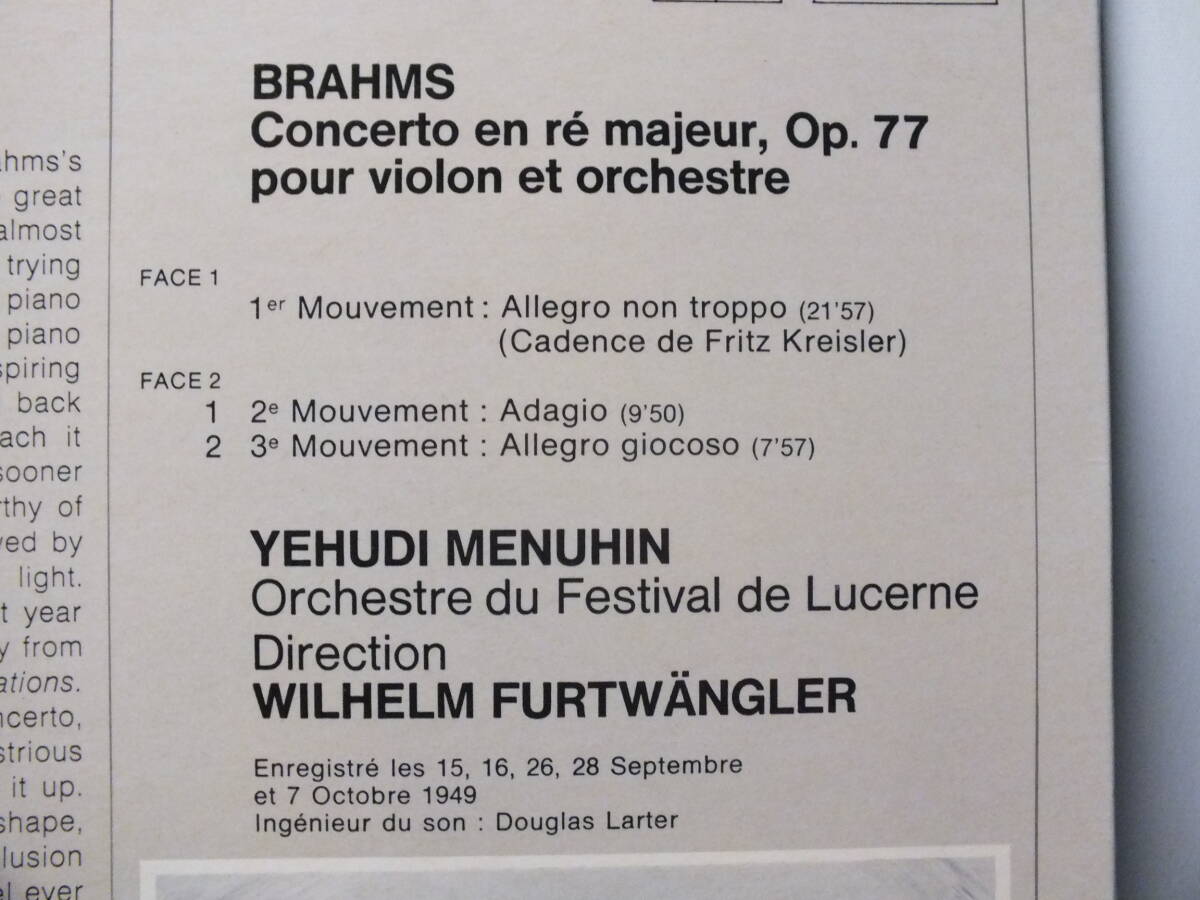 | C 051 01 239 【ヴァイオリン】ユーディ・メニューイン MENUHIN フルトヴェングラー ブラームス 協奏曲 LP【8商品以上同梱で送料無料】2507 | |||||