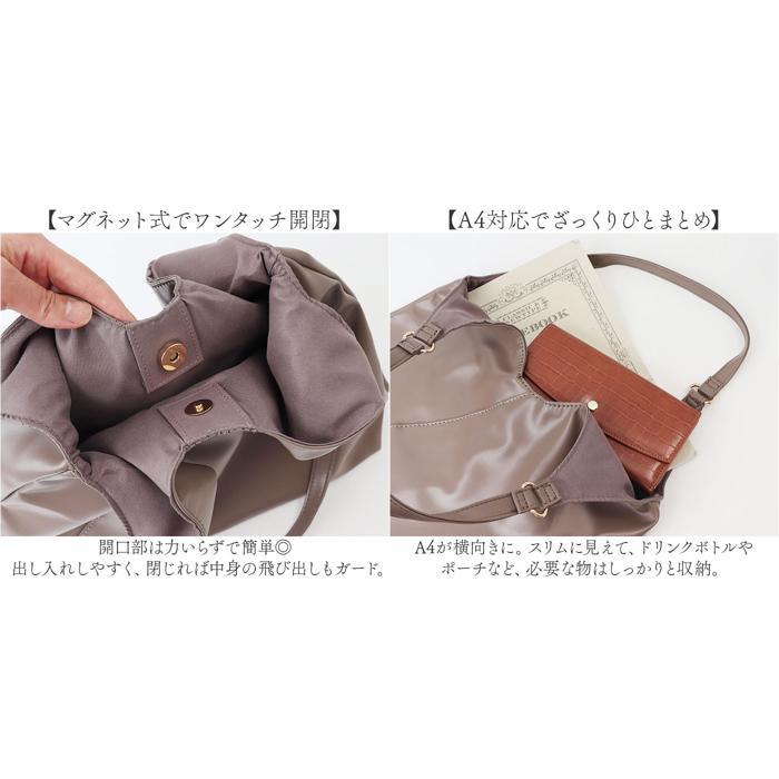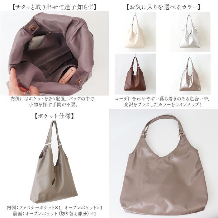 | 商品説明 | ・・【オン・オフ問わず頼れる相棒】 ・普段のお出かけも、通勤・通学もお任せ♪ヘビロテ確定の「合皮VカットA4トート」。 ・【肩掛けOK!軽やかな使い心地】 ・軽量で柔らかな合皮素材を使用。体に負担がかかりにくく、サッと肩掛けできてストレスフリー。 ・【ポケットにもなる切り替えデザイン】 ・シンプルながら、前面の切り替えデザインがポイント。スマホなどを入れるポケットに! ・【マグネット式でワンタッチ開閉】 ・開口部は力いらずで簡単◎出し入れしやすく、閉じれば中身の飛び出しもガード。 ・【A4対応でざっくりひとまとめ】 ・A4が横向きに。スリムに見えて、ドリンクボトルやポーチなど、必要な物はしっかりと収納。 ・【サクッと取り出せて迷子知らず】 ・内側にはポケットを2つ配置。バッグの中で、小物を探す手間が不要。 ・【お気に入りを選べるカラー】 ・コーデに合わせやすい落ち着きのある色合いや、光沢をプラスしたカラーをラインナップ! ・【ポケット仕様】 ・内側:ファスナーポケット×1、オープンポケット×1 ・前面:オープンポケット(切り替え部分)×1 |
