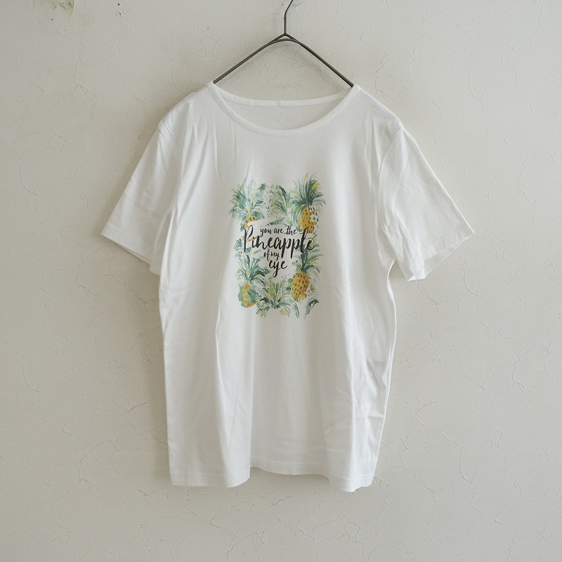 | Leilian WHITE LABELのコットンプリント半袖Tシャツです。カラーはホワイトで、少し透け感のあるコットンTシャツ地で仕立てられています。プルオーバータイプで、前身頃のプリントがアクセントです。 |