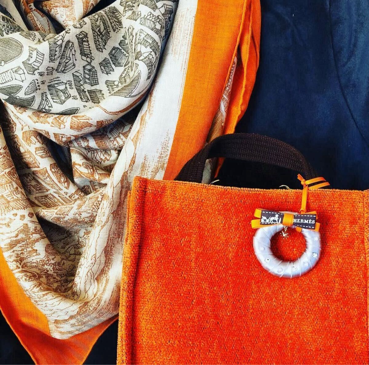 エルメスを象徴するカシミアシルク生地にプリントを施した、柔らかくて軽いカレジェアンは、日常的に使いやすいアイテムです。