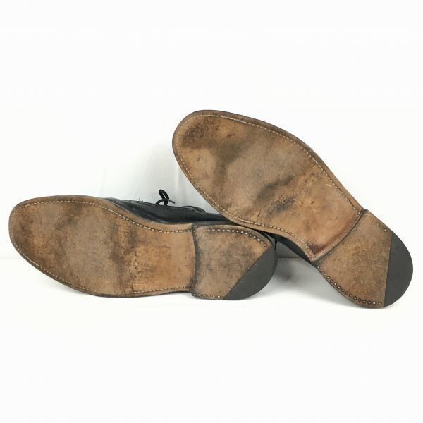 | 商品説明 | ※商品情報について※ 上部に表示されております【アイテム】・【表記サイズ】などの各項目は、商品カテゴリ振り分けの際に自動で表示される大まかな情報となっており、商品タグなどに記載されている正式な情報と一部異なっている場合がございます。 大変恐縮ではございますが、ご購入の際は下記の詳細情報や商品画像のご確認をお願い致します。 ーーーー 上質なレザーを使用しており、作りも堅牢なシューズです。 ビンテージ品の為、多少の経年劣化はあるものの使用に問題はないレベルの良品です。 ややカビ臭がございましたので、アルコール消毒・清掃済です。 保管中に再発する可能性がございますので、届きましたらお手数ですが再度お手入れをお願いします。 USED品に理解がある方のご購入をお待ちしております。 古い中古品ですので写真をよくご確認お願い致します。 ●サイズ: 27.0 - 28.0 程度 ※サイズ表記がなかった為採寸をご参考下さい。 ※靴メーカーによってサイズ感やワイズの細さには若干の差異がある場合がございますので、予めご了承ください。 アウトソールの長さ 約31cm 甲部分の長さ 約11.5cm こちらの商品はサイズが合わなかった場合、別のサイズが合う品に返品交換が可能な商品となります。 条件1.ご到着後3日以内のご連絡で試着程度のものに限ります。 外で着用して汚れたりしたものは交換不可となります。 条件2.ご返品は元払いでお願いします。 また、再送する際の送料をいただきます。 条件3.ご交換品は当店の出品物からお選びください。 代金のみの返還はいたしません。 ご交換品につきましては、ご購入額以下の全商品が対象となります。 同じカテゴリの似た商品でなくても、全商品が対象となりますのでご自由にお選びください。 また購入額以内であれば2点以上も可能です。 。 過去に出品してしばらく売れていない品は1000円単位の値下げもしておりますので、ぜひご覧ください。 <BUZZBERG> |