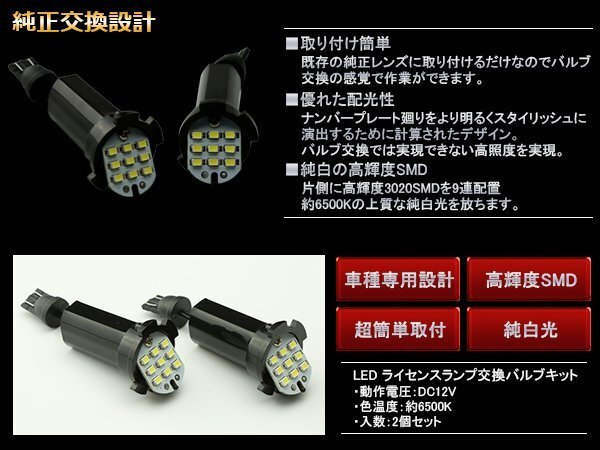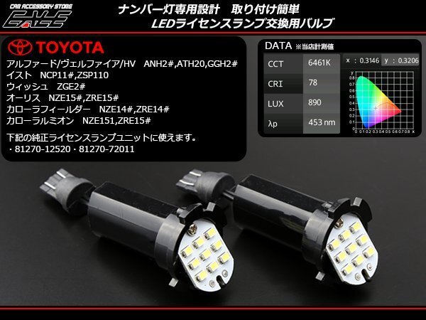 ナンバー灯専用設計 取り付け簡単 LED ライセンスランプ交換用バルブ 3020SMDを片側に9連配置、約6500Kの上質な純白光を放ちます。 その他、トヨタ系パーツは⇒ こちら ■適合車種 20系 アルファード / ヴェルファイア 110系 イスト 20系 ウィッシュ 150系 オーリス 140系 カローラ フィールダー 150系 カローラ ルミオン 下記品番の純正ライセンスランプユニットに使えます。 ・81270-12520・81270-72011 |