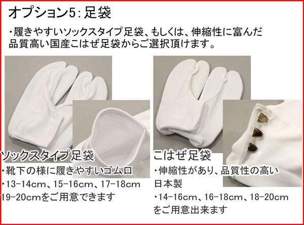 | 足袋 三尺帯 腰紐 かかと留め 着付説明 | ■足袋は2種類からご用意できます。 1.ソックスタイプの足袋:別途¥580 サイズ一覧 13~14cm 15~16cm 2.こはぜ付本格足袋(日本製):別途¥1500 サイズ一覧 13~14cm 15~16cm ■三尺(兵児帯)はピンク、赤、黄色から選べて¥1500 ■腰紐:1本240円 ■かかと留め(赤):別途¥580 ■三歳祝着の着付けは簡単ですがご要望のお客様には着付説明をメールで資料 をご案内いたします。(無料) 着付けサイト、動画をご紹介いたします。 ※ご要望のお客様は、「フォーム備考欄」「メール(aji_net@khaki.plala.or.jp)」「お電話」「FAX」いずれかの方法でご連絡ください。 |