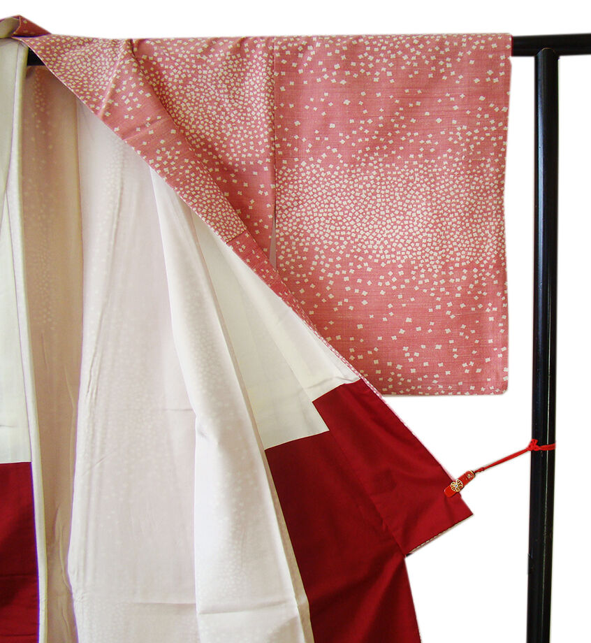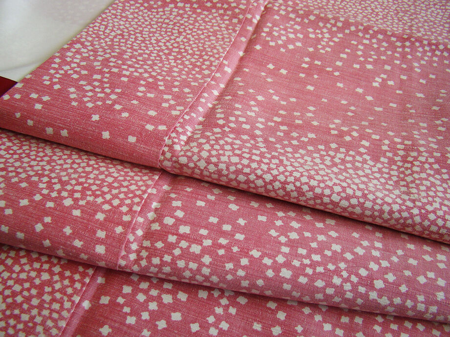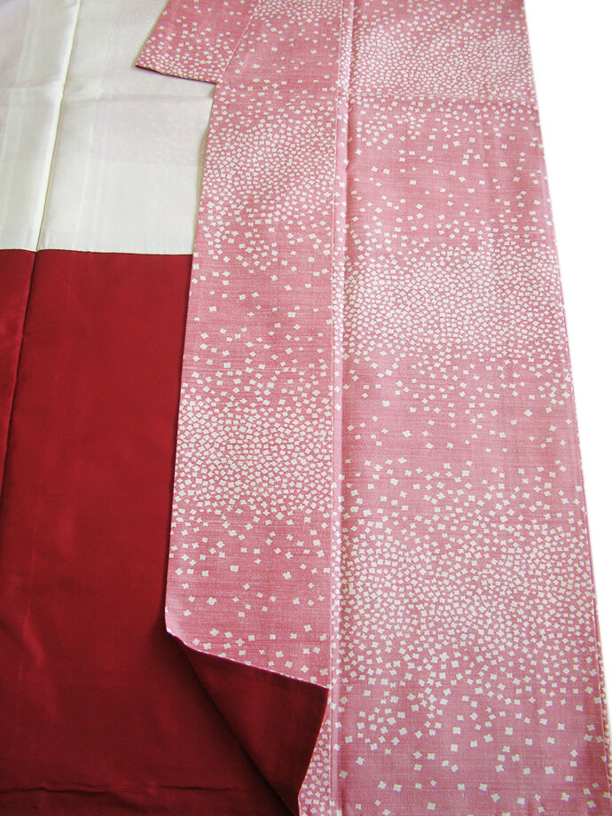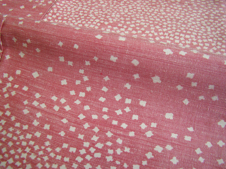 | 商品説明 | こちらのお品は「袷」ですので10月から5月までお召頂ければと思います。 しなやかな紬は、着易く動きも軽く、着くずれしない腰の強さを併せ持った お洒落着としていつでもどこへでもお気軽にお愉しみ頂けご愛用頂けるお品です。 しなやかな手触りのシャリやハリ感ある肌触りも心地よい柔らかな紬地、 薄い長春色地に白色の織柄、 八掛は濃い赤色(正絹)、幅広い年代の方にお召し頂けます。 |
