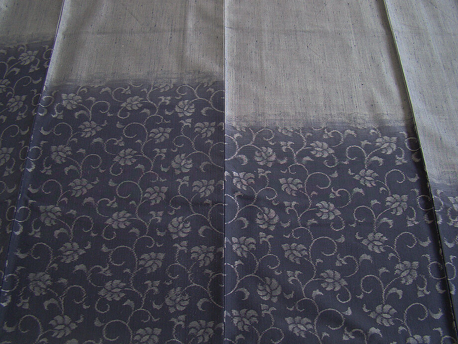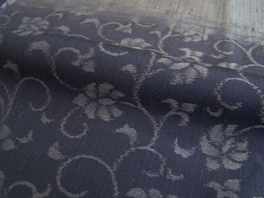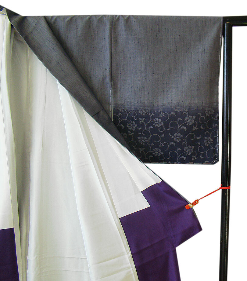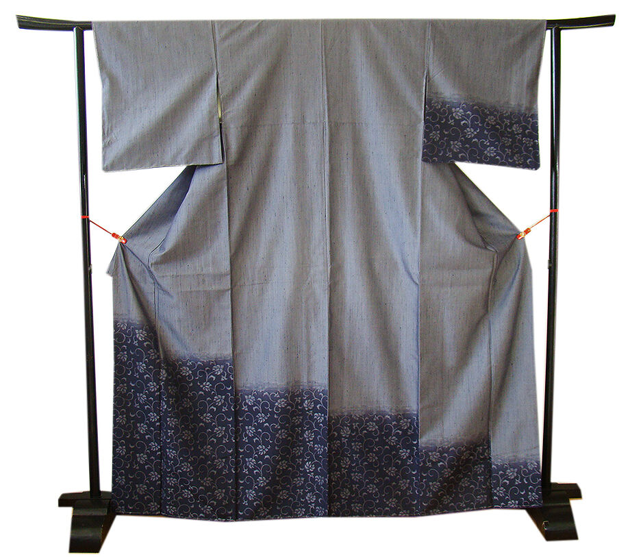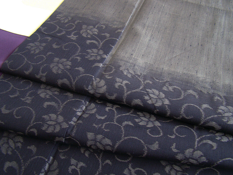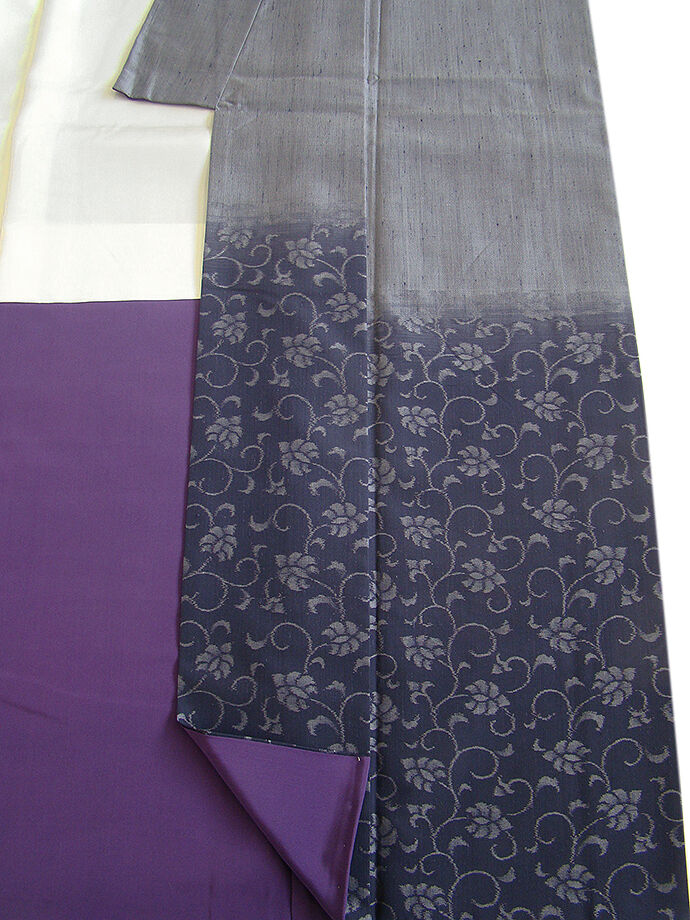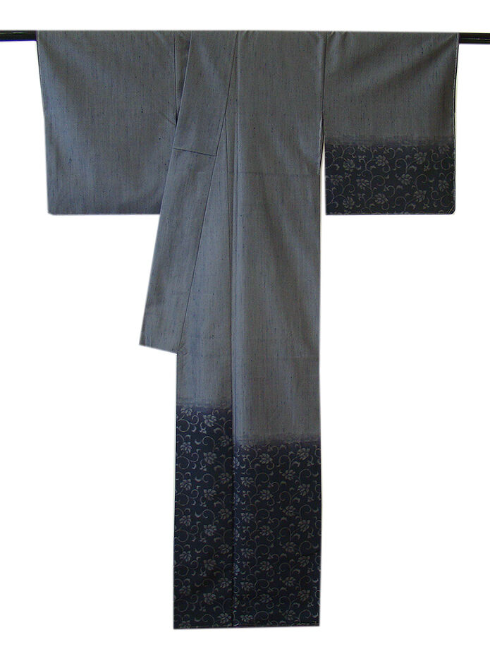 | 商品説明 | こちらのお品は「袷」ですので10月から5月までお召頂ければと思います。 とてもしなやかで柔らかな手触りの紬地、着易く動きも軽く、着くずれしない腰の強さを 併せ持ったお洒落着としていつでもどこへでもお気軽にお愉しみ頂けご愛用頂けるお品です。 渋い鉛色地に裾にかけて墨色ぼかしに花唐草柄の織柄、 八掛は紫色(正絹)、裄長め、幅広い年代の方にお召頂けるでしょう。 |