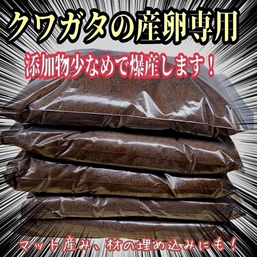 クワガタが最も好む厳選したクヌギのオガコを100%使用して室内でじっくり特殊発酵させた産卵専用完熟マットです。 添加剤をかなり減らして発酵させてる為、産卵に特化した商品です。 天然に近い環境を再現する為にオガは植菌で朽ちらせたものを使用してますのでクワガタの産卵意欲が高まり多産へと導きます。