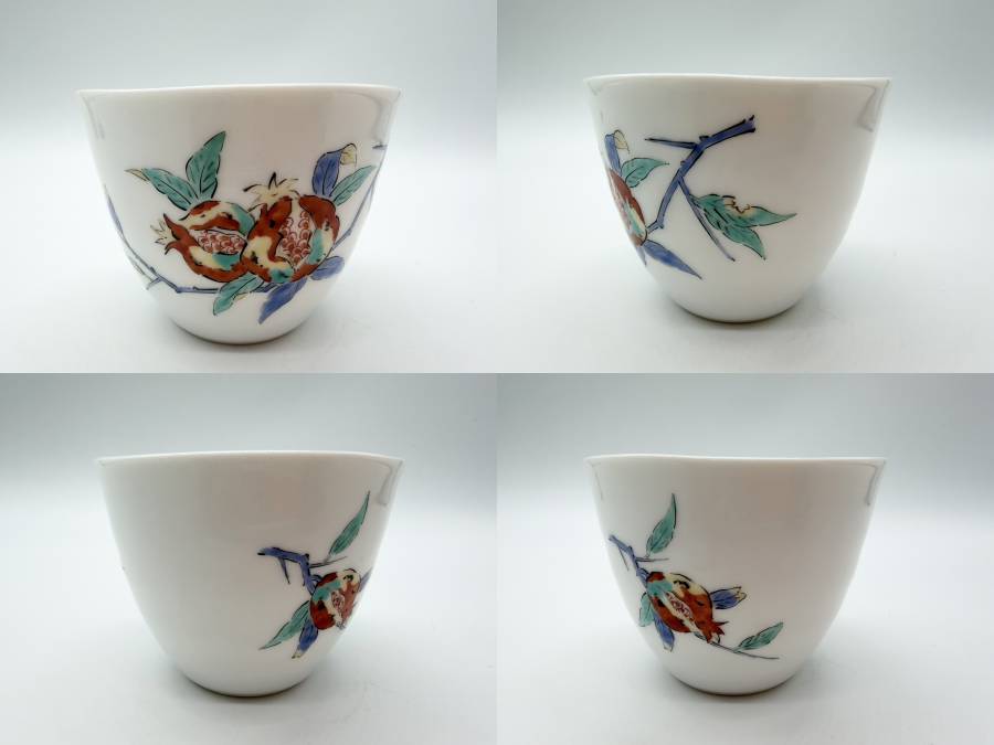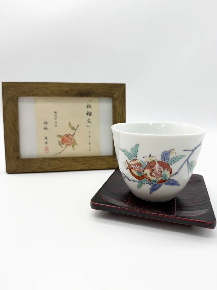 ●現代の名工 館林延幸 舘林 柿右衛門窯の絵 柘榴文 フリーカップ ティーカップ 湯呑み 箱無し特価!