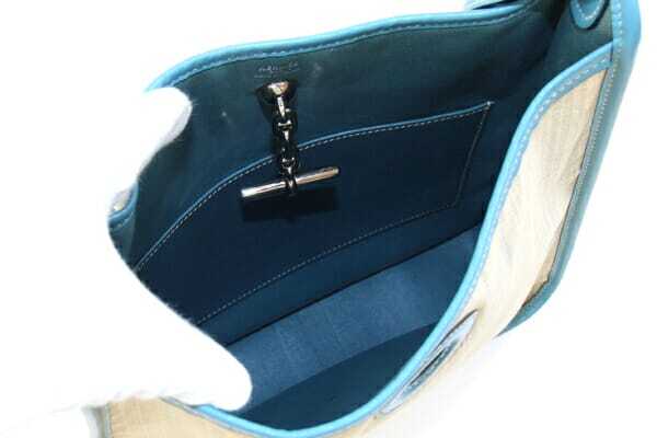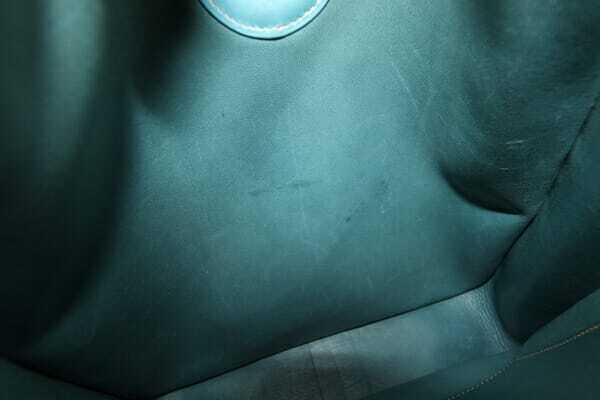 | 状態 | 外側:レザー部分に小キズ・小汚れあり、フチ周りにヤケのような薄黄ばみ変色あり。ステッチ所々茶系汚れあり。キャンバス地にツレ多数あり。 内側:小キズ、スレ、汚れ、薄黄ばみ変色あり。 金具:小キズ、スレあり。 |