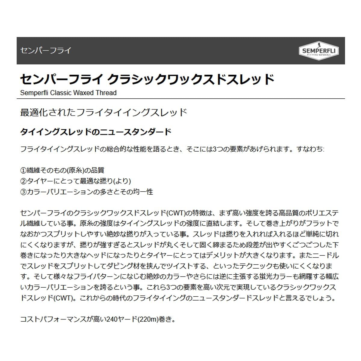 | 商品名 | センパーフライ(Semperfli) センパーフライ クラシックワックスドスレッド 8/0 レッド |