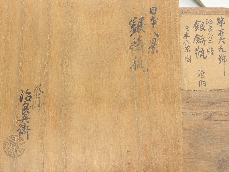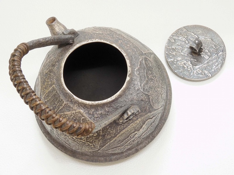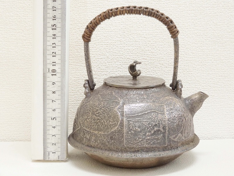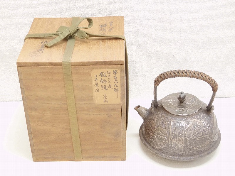 ◆純銀/釜師/高木治良兵衛/日本八景/銀鋳瓶/銀瓶/銀製/約1,462g/共箱付/茶道具/作家物(梱包サイズ80)◆* コメント・スレ、キズ、うす汚れ等があり、一部くもり、ヤケ、黒ずみ、変色、凹み等ダメージがあります。 ・箱にヒビ割れ等があり、接着した痕があります。 ・※専門店ではございません為、水漏れの確認等は一切行っておりません。経年・劣化・欠け・割れ等によりご使用頂けないお品や、ご使用の際に破損するお品が含まれている可能性がございます。あくまで中古品となりますため、予めご了承頂きました上での御入札をお願い致します。 ・※当店では梱包時にも割れ、破損等確認の上、厳重梱包して発送致しております。しかしながら割れやすいお品となりますため、配送中に破損する可能性がございますが当店では一切の責任を負えません。商品到着後破損等トラブルがあった場合には輸送業者様へご連絡して下さいますようお願い致します。また、あくまで中古品となりほぼ1点物のお品となりますため、お取り替え等の対応も致しかねます。発送詳細を必ずご確認頂き、予めご了承頂きました上での御入札をお願い致します。 ・ * 品質・サイズ -- 着物サイズ目安 -- ・高さ約18cm×よこ約16.5cm×奥行約15cm ・ ・ ・尚、専門店ではございません。商品情報等は、外観で確認できる文字や刻印を基に記載しておりますので、写真にてご確認下さい。また中古品ですので、ご理解のある方のご入札をお願い致します。ご入札前に商品説明(サイズ等)、発送詳細を必ずご確認頂き、ご納得の上でのご入札をお願い申し上げます。なお、発送方法変更のご要望にはお応え致しかねます。予めご了承下さいませ。 ・梱包サイズ:80サイズ(発送詳細必読) * 程度 当社基準ランク・・・【5】
