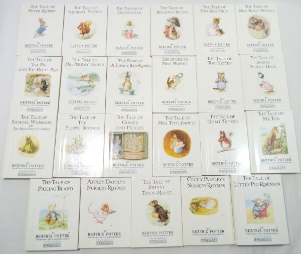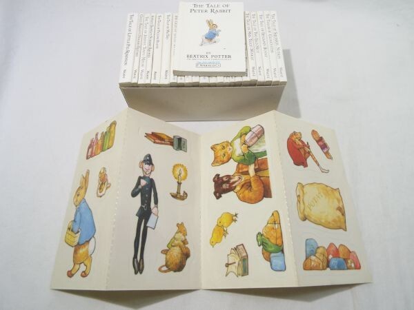 | <left> 【商品内容】 THE COMPLETE MINIATURE WORLD OF PETTER RABBIT: 23-Copy Miniature Collection Box 著者:ビアトリクス・ポター 出版社:WARNE 発行年:?年?月?日 ?版 商品の状態:並下。使用感、経年変化、折れ、汚れ等がある。 (焼け少々 / 折れ少々 / 汚れ少々 / ヨレ少々) 付属品: ステッカー 備考: 箱の表紙のプラスチック製の窓が経年によって黄色く変色しています。 中は目立った汚れや傷みはありません。 一冊のみ多少の角折れがあります。 お店を模したカワイイ箱に収納された、ピーターラビットのかわいらしいミニチュア絵本23冊セットです。 ピーターラビットの絵本シリーズ全巻分になります。 洋書。英語絵本。ソフトカバー。1冊のサイズは縦約7.8cm、横約5.9cm。 ■セット内容 ・The Tale of Peter Rabbit ・The Tale of Squirrel Nutkin ・The Tailor of Gloucester ・The Tale of Benjamin Bunny ・The Tale of Two Bad Mice ・The Tale of Mrs. Tiggy-Winkle ・The Tale of the Pie and the Patty-Pan ・The Tale of Mr. Jeremy Fisher ・The Story of a Fierce Bad Rabbit ・The Story of Miss Moppet ・The Tale of Tom Kitten ・The Tale of Jemima Puddle-Duck ・The Tale of Samuel Whiskers or, The Roly-Poly Pudding ・The Tale of the Flopsy Bunnies ・The Tale of Ginger and Pickles ・The Tale of Mrs. Tittlemouse ・The Tale of Timmy Tiptoes ・The Tale of Mr. Tod ・The Tale of Pigling Bland ・Appley Dapply's Nursery Rhymes ・The Tale of Johnny Town-Mouse ・Cecily Parsley's Nursery Rhymes ・The Tale of Little Pig Robinson </left> #絵本 #ピーターラビット #ビアトリクス・ポター #豆本 ミニチュア本 当商品は中古品です。 状態については、写真もよく参考にしてください。 商品の状態についてできる限り確認・記載しておりますが、見落としがあった場合はなにとぞご容赦ください。 |