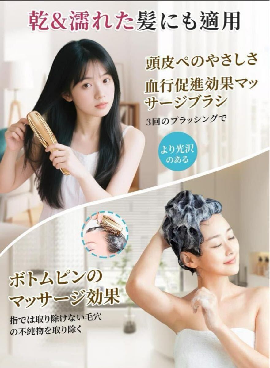 【美髪育てる頭皮ブラシ】ヘアブラシ レディース くし 髪の毛 乾湿両用