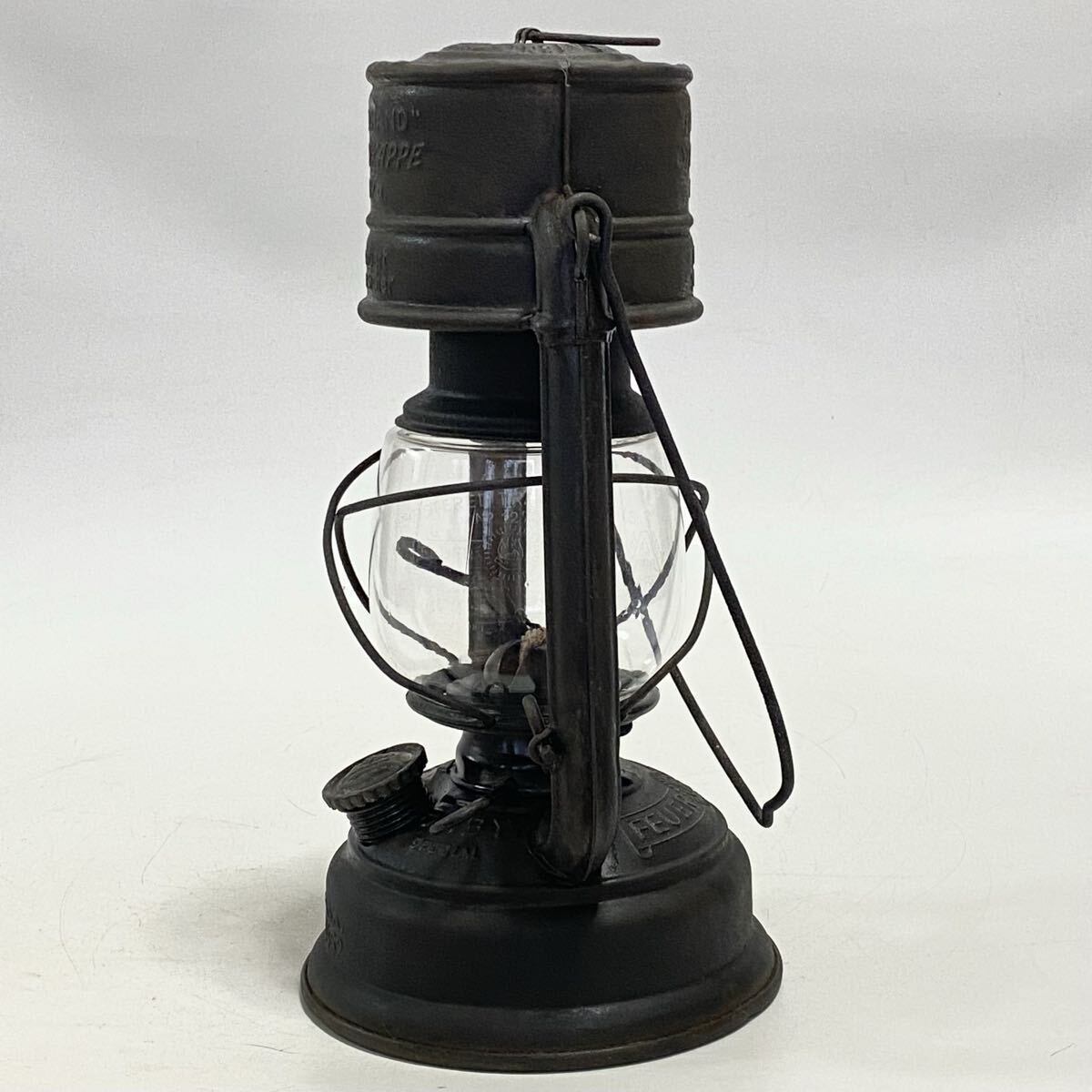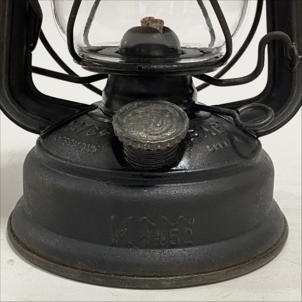 ご覧いただきありがとうございます。 1902 年創業のドイツの老舗ランタンメーカーFeuerhand(フュアーハンド)社の、ハリケーンランタンです。 stkとはSturmkappe(風防)の略称。現行モデル276とサイズは同じですが、風防付きの廃盤モデルです。 DBPaとは特許申請中を示しており、この刻印がある個体の製造時期は1950年代前半の短い期間です。 K1452の刻印と波線はカールスルーエ波線と呼ばれ、ドイツのカールスルーエ研究所で認定を受けたことを示しており、公共機関での使用が許可された個体です。 DBPa.刻印とカールスルーエ波線が入った個体は非常に希少です。 ホヤは数が少なく希少なAUER社製です(ロゴは薄くなってほぼ見えません)。 【状態】 ・大きなへこみや変形はありませんが、風防部分の上ふち部分が少し変形しています。 ・キズ、汚れ、サビがありますので、写真で状態のご確認をお願い致します。 ・芯の上下、バーナー部脱着、燃料キャップの脱着、リフターの上下、問題ありません。 ・タンクの漏れはありません。 ・ホヤの欠けはありません。 【サイズ】高さ 約26cm | ||