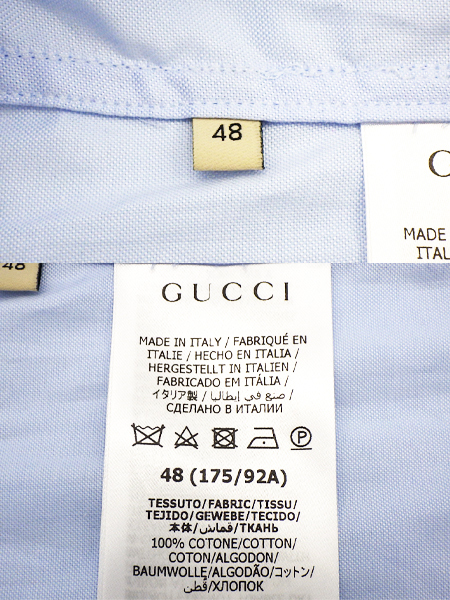 | GUCCI グッチ ボタンダウンシャツ 長袖 うさぎ刺繍 コットン ライトブルー系 サイズ48 メンズ |