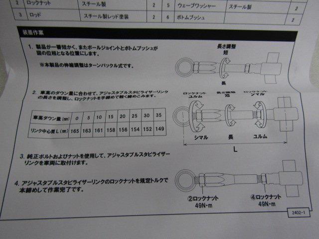 | アジャスタブルスタビライザーリンク |