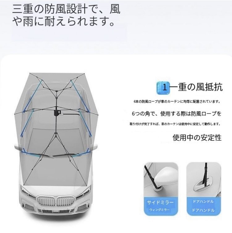 【ポータブルカーテント】このカーテントは取り付けが簡単で、折りたたみと展開が素早く完了し、開くのに10秒かかります。折りたたみ構造で設計されており、長さ4.2m/4.8m/5.2m、重さ6/6.5/7kgで、持ち運びが簡単で、車を駐車するときにどこでも使用できます。| 出价者 | 信用 | 价格 | 时间 |