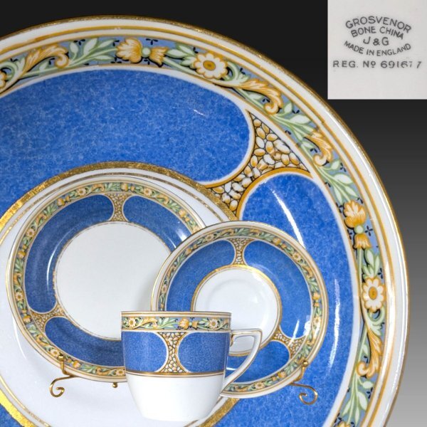 | 1920年代 グロブナー(Grosvenor) トリオ 登録番号 691677 パウダーブルー&金彩 J&G ジャクソン&ゴスリング 910 |