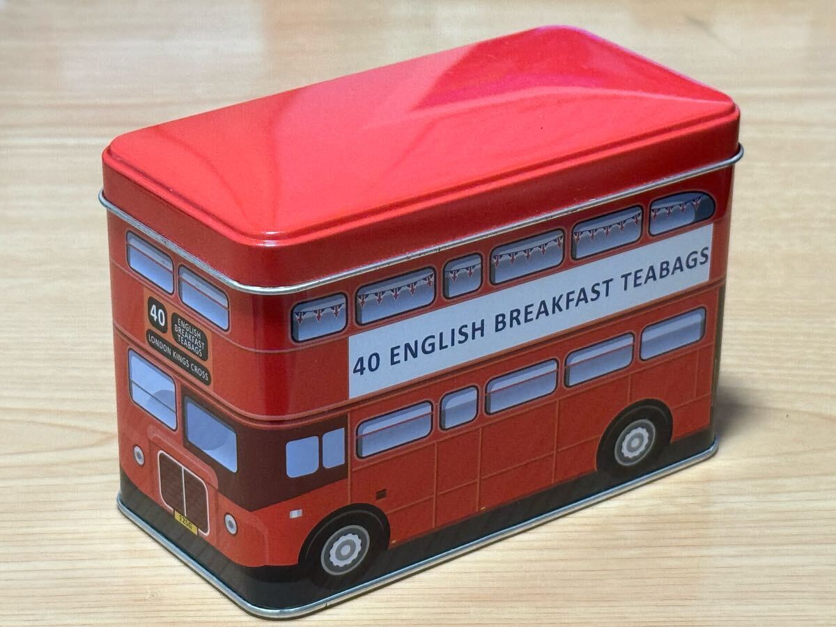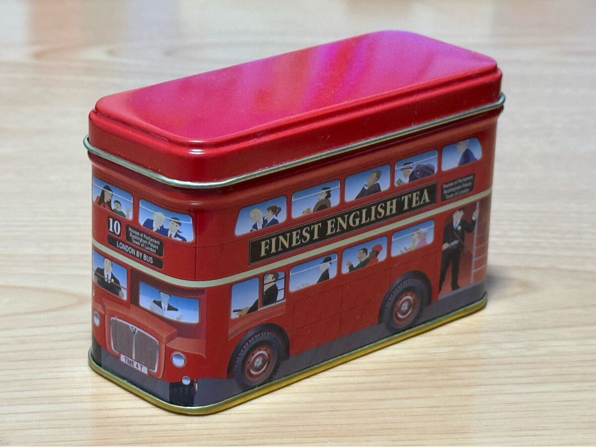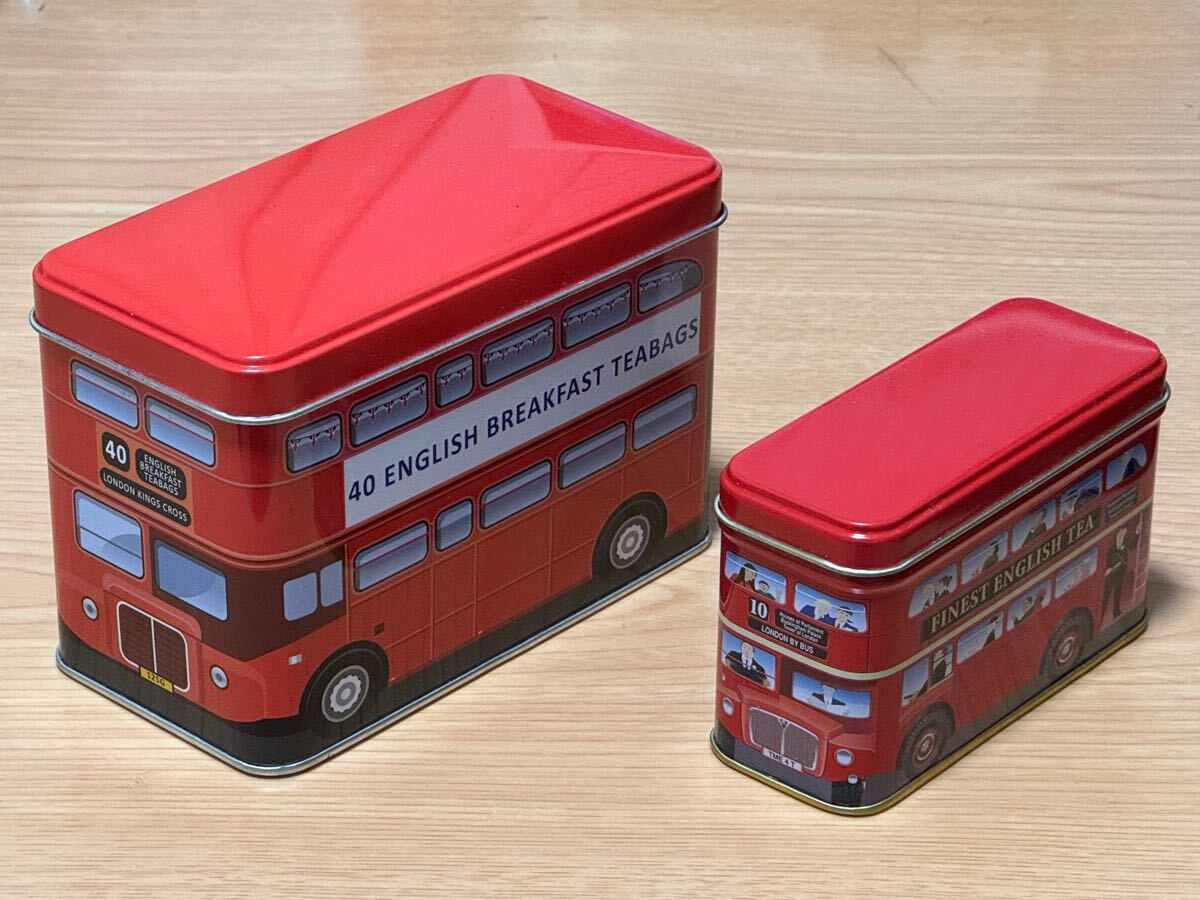 ロンドンバスの形をした空缶です。大小2個セットです。大サイズの大きさは長さ約14㎝、高さ約9.5㎝、幅約7.5㎝、小サイズの大きさは長さ約11㎝、高さ約7㎝、幅約4.5㎝になります。