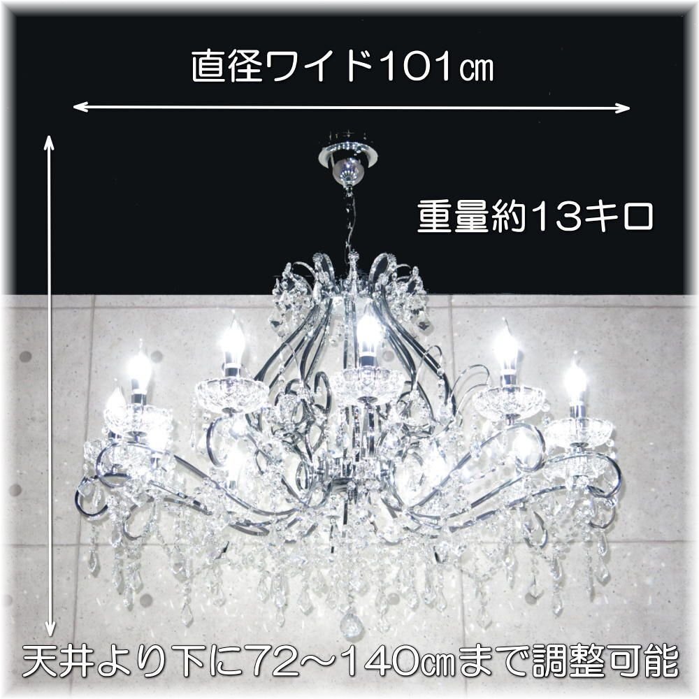 | 商品説明 | ![]() ☆LED電球サービスキャンペーン開催中!☆【送料無料!】新品 キャンドル12灯 豪華クリスタルシャンデリア 101cmワイドタイプ♪ ●キャンペーン期間中 広角LED電球12灯(¥14400-相当)お付けいたしまして驚きのプライス! 【LED付き!】新品 豪華 LED 12灯 クリスタル シャンデリア ワイド101センチ LEDシーリングタイプ ☆キャンドル型広角LED電球12灯(¥14400-相当)をお付けさせて頂き驚きのプライス! ☆上質水晶ならではの最高の輝きを放つ新品クリスタルシャンデリア ☆添付画像では肉眼で見る本来のクリスタルの輝きをご確認いただけませんが、12灯の電球が上質クリスタル水晶を通し光の屈折で光の持つ本来のカラーをかもし出しダイヤモンドのように輝きながらワット数以上の明るさでお部屋を照らします♪ ☆シャンデリア本体は調光にも対応しておりお好みの明るさに調整可能です ※調光が必要の場合、調光対応LED1個別途¥200-と汎用調光器(Panasonic製LED用調光器推奨)が必要です ☆付属電球・・・口金E17キャンドル型広角LED白色又は暖色(明るさ40ワット消費電力4ワット 暖色110Lm/W・白色130Lm/W) ※調光対応LED1個別途¥200- ☆取り付けに関しましてはワンタッチでは御座いませんが(配線はワンタッチ)引掛けシーリングに対応しております ☆キャンドル12灯 豪華 シンプルデザイン クリスタルシャンデリアを是非この機会に! ☆サイズ・・・天井より下に最短約72cm(飾り部分ふくむ)から最長140cmまで調整可能 直径約101cm 重量約13キロ ※140cm以上希望の場合ご注文後お申し付け願います ![]() |
