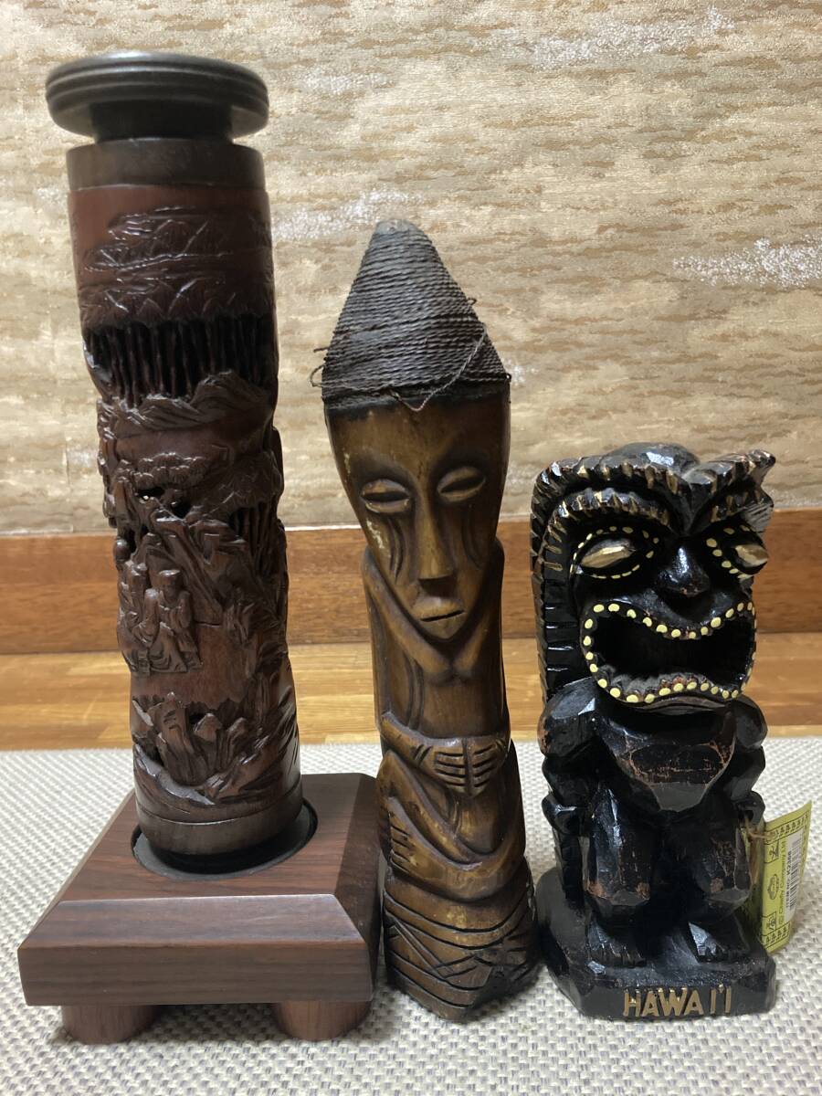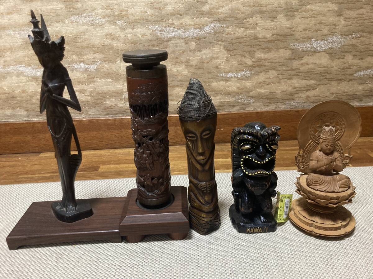 【木彫/民芸品他12点まとめて】木彫 民芸品他 雑貨 置物 縁起物 工芸品 バリ 仏像 ハワイ 他 12点まとめて【現状品】 | |||