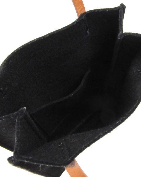 | 小振りのカジュアルながらも上品なバッグ。フエルト素材でコーディネートしやすい。外側と内側にポケットがついています。ちょっとしたお出かけや、サブバッグとしていかがでしょうか。 |