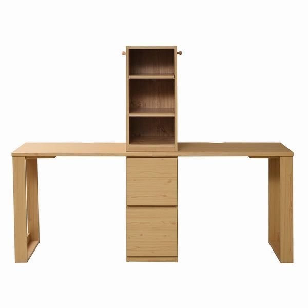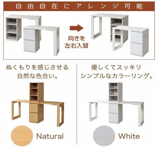 木目調が優しい印象を与えるホワイトとナチュラルの2カラー。 ラックとチェストがついている省スペースなデスクです。 積み重ねても横に並べてもいいので自由に使えます。 A4ファルや教科書が入る便利な設計です。 |