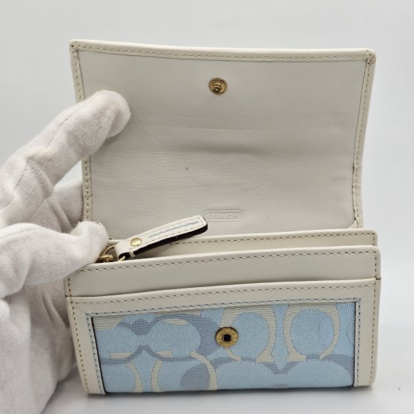 こちらは、コーチのシグネチャー柄が素敵な二つ折り財布です。