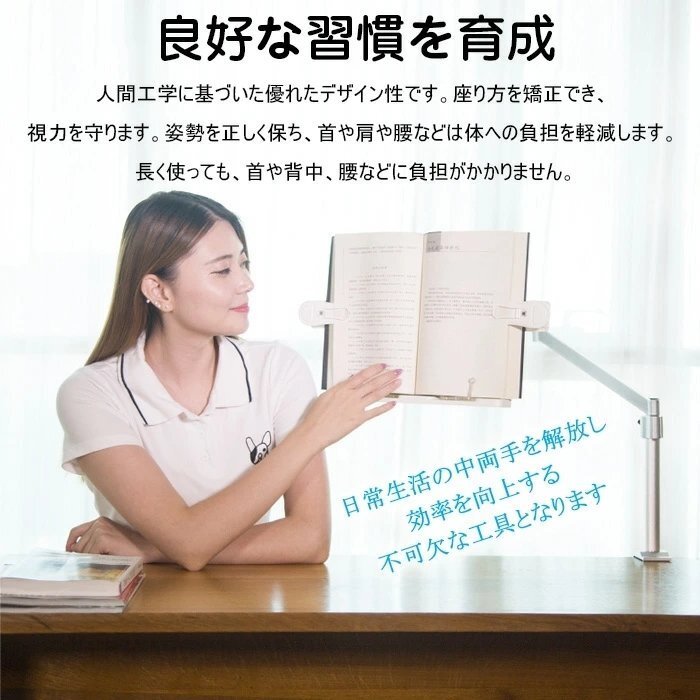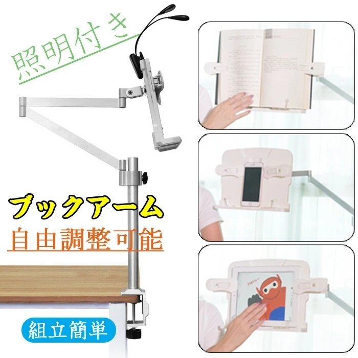 ブックアーム 書見台 本置き 読書スタンド 勉強 学習用スタンド 照明付き 高さ/角度調整 可能 ブックスタンド デスクアーム 寝ながら 読書 [浏览原始页面]