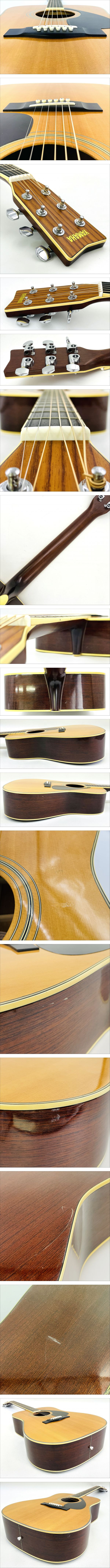 | ■状態評価■※弊店基準を元にしております。 中古整備品 ■商品詳細■ ・トップ:スプルース単板 ・サイド/バック:ローズウッド合板 ・ネック:マホガニー ・指板:エボニー調ローズウッド ・ブリッジ:ローズウッド ・ペグ:YAMAHAロゴ入りクロームペグ(オリジナル) ・ポジションマーク:雪印型インレイ ・塗装:ナチュラルグロスフィニッシュ ・シリアル10602 ■ 音質特徴■ 低音の力強さと中域の厚みが特徴の、国産ヤマハ特有の深い鳴りです。 ストロークでは明瞭なアタック感、アルペジオでは柔らかく温かい響きが得られます。 70年代FGシリーズらしい「乾いた木の音」が心地よく、長年弾き込まれた楽器ならではの味わいがあります。 ■ 総評■ FG-250Dはヤマハの中堅モデルながら、上位機種譲りの木工精度とサウンドバランスを持つ人気モデルです。 ヴィンテージ国産ギターの魅力を感じたい方に最適な1本です。 ■状態■ 経年による小傷・打痕・スレありますが、構造的問題はありません。 ※画像にて状態をご確認下さいましたら幸いです。 ※専門家に検品して頂きメンテナンス調整済みになります。 ※清掃済み、新品弦Aria AGS-200XLに交換済みです。 ■メンテナンス内容■ フレット磨き/FERNANDES スクラッチメンダー946 指板磨き&保湿/Dunlop (Jim Dunlop) FRETBOARD 65レモンオイル ボディ・ペグ清掃/ギタークリーナー・クロス ・ネックの反りの状態確認 ・フレットの状態確認 ・新品弦に交換済み ・ネック:ほぼストレート ・フレット残り:全体的に約8割残 ■サイズ■ 全長:103cm ボディ最大幅:40cm 奥行き:11.5cm ナット幅:44mm 弦長:620mm 重量:2370g 弦高:6弦4mm 1弦3mm ※ご不明点は入札前に必ずご質問下さい。 (本文記載事項には返答いたしかねる場合がございます) ※画像1枚目に写っているものが全てになります。 【梱包発送について】 発送元は『札幌市 西区』 からとなります。 ヤマト運輸にて配送させて頂きます。 着払いでの発送、および定型外等その他発送方法には 業務上の都合によりご対応出来ません。 予めご了承下さいますよう、何卒宜しくお願い致します。 ※配送料金表は最下部に記載がございますので、大変お手数ではございますが一番下までスクロールしてご確認下さいませ。 ご入金確認後当日~2日以内で発送させて頂きます。 (基本的に24時間以内の発送になりますが、土日祝日は集荷予約が必要な為、発送出来ない場合がございます。予めご了承下さいませ) ■お支払方法について■ お支払いは『!かんたん決済』のみとさせて頂いております。 【お支払金額について】 落札価格+送料 上記の金額をご確認の上お支払いをお願い致します。 ※落札日から2日以内にお振込のお手続きをお願い致します。 ※落札後24時間以内に取引ナビにてご連絡が無い場合と 5日以内にご決済確認できない場合は、落札者都合での キャンセルとなりますので、ご理解の上ご入札をご検討下さいませ。 上記記載を予めご確認の上、ご入札・ご落札をお願い致します。 ■ご注意事項■ 【ご入札前に必ずご確認下さいませ】 いたずら入札、落札後のご連絡が取れなく放置の方が多くおられますので、注意喚起になります。 !かんたん決済のお支払い期限は「落札日から5日以内」です。 ご落札頂いてから24時間以内にご連絡がない場合と!かんたん決済のお支払い期限以内にご決済確認できない場合は「落札者都合として削除」させて頂きます。 上記の事例から「落札者都合として削除」した際は「非常に悪い落札者です」の評価を入れさせて頂く事となりますので、 報復評価等はなさらない様、予めご了承下さいませ。 上記内容で報復評価等があった場合に関しましては、 のトラブル申請制度に通報させて頂きます。 また、マイナス評価の多い方や新規IDの方、いたずら入札、取引継続困難と判断した際は、上記期間を経ずに入札の取り消し、または「落札者都合として削除」させて頂く場合がございます。 【商品の状態に関しまして】 弊店取扱い商品は、中古品が多く一度人の手に渡ったお品物でございます。 使用感、汚れ、変色、カビ、擦れ、剥がれ、金具類の錆、破損等がある場合がございます。 ※必ず状態の記載はいたしますが、商品はUSED品・もしくは保管品が主となりますので、神経質な方はご遠慮下さいますようお願い致します。 以上あくまでも中古品であることをご理解頂きました上でご入札下さいますようお願い申し上げます。 【色合いについて】 お色・状態に関しましては、モニター環境や太陽光・室内ライトなどの環境により見え方が違う事もございますのでご理解下さいませ。 パソコンやスマートホンなどモニター環境によりまして商品のお色、素材感は正確にお伝えするのは困難でございます。 ※また、匂い等の感じ方も大きく個人差が御座います、ご落札後の色味、匂い、素材感等の相違による返品・返金は 対象になりませんので、ご入札前に必ずご質問下さいませ。 ※サイズ・色・付属品・状態・お取引条件(発