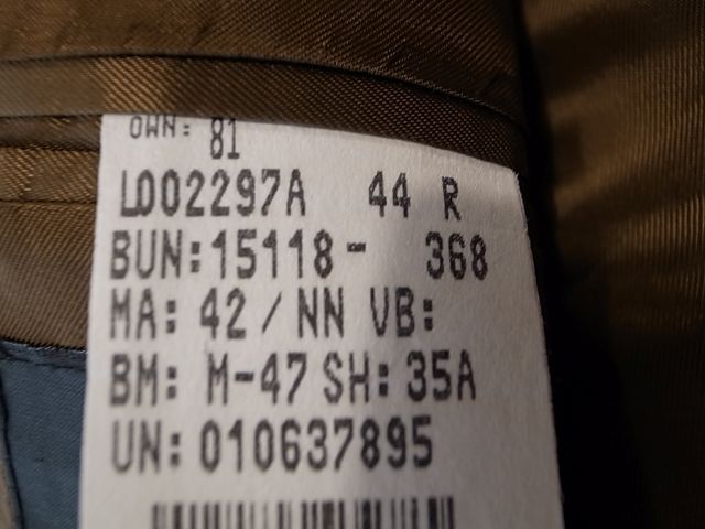 ◆ブランド 「CHAPS RALPH LAUREN」 アメリカ古着 ●サイズ表記 44R 実寸サイズ 2XL(3L)相当 肩幅…51cm(肩先から肩先の間の長さ) 身幅…60cm(両脇を横直線に結んだ長さ) 着丈…80cm(後衿ぐり中央から後身頃裾) 袖丈…62cm(袖付けの肩先から袖先) ※平置き状態での素人採寸ですので、多少の誤差はご了承ください。 ●素材…95%WOOL 5%CASHMERE オールシーズン対応 ●色…カーキ×黒 ●ポケット… フラップポケット ●裏地…総裏仕立て ●ベント…センターベント ●製造国表記…CANADA ●状態…使用感は少ない美品です。 ★送料 全国一律 700円 佐川急便 (北海道900円 沖縄その他離島1700円) ※複数ご購入の場合、同梱発送可能です。 |