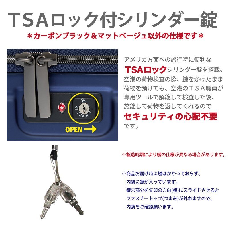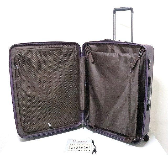 進化を遂げた軽量ボディ。 心も足取りも軽くするスーツケース 驚きの軽さと快適性をぜひ体感して下さい。 ![]() ![]() ![]() ■TSAロック付シリンダー錠 アメリカ方面への旅行に便利なTSAロックシリンダー錠を搭載。空港の荷物検査の際鍵をかけたまま荷物を預けることができます。 ■ポリウレタングリップ 持ち上げた際の握り心地がよく、長時間持っていても手が痛くなりにくいポリウレタングリップを採用。旅行時は階段の上り下りや、預け入れ荷物の受け取り時など、意外とケースを持ち上げる機会は多いもの。何気ないところにも快適性を追求した仕様です。 ■段階調節キャリーバー 段階調節が可能なキャリーバーを搭載。シーンやお好みに合わせて引きやすい高さに合わせられます。※高さの調節は始めに一番上までバーを出し、下げながら調節して下さい※(混雑時の走行は危険な場合がございますのでご注意下さい) ![]() ~ 超軽量 静音キャスター搭載 66cm~ ■カラー■マットバイオレット ■サイズ■約H66(71)×W48(51)×D31(32)cm ( )はキャスター・取っ手込み総外寸 ■重量■約3.6kg ■容量■約105L(約7泊-長期旅行向き) ■キャスター■静音キャスター(日乃本錠前社製) ■素材■ポリカーボネート ■通常価格■33,000円(税込) ■メーカー■siffler(株式会社シフレ) ■状態■未使用 アウトレット 美品 |