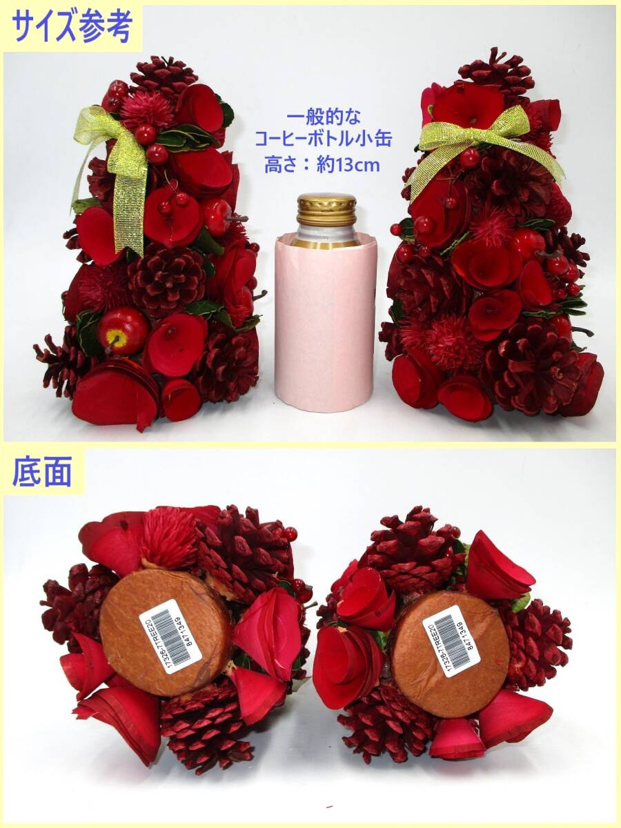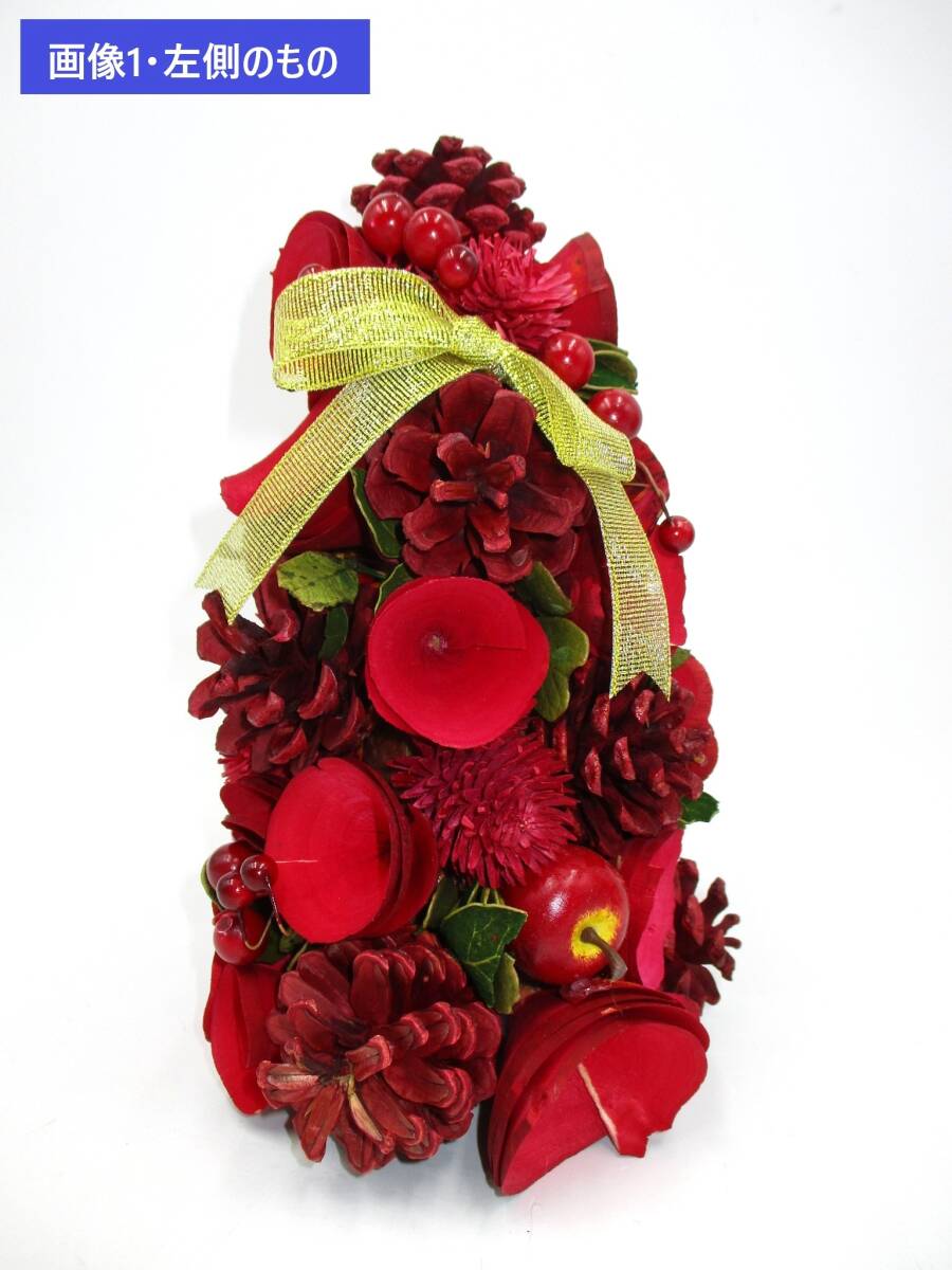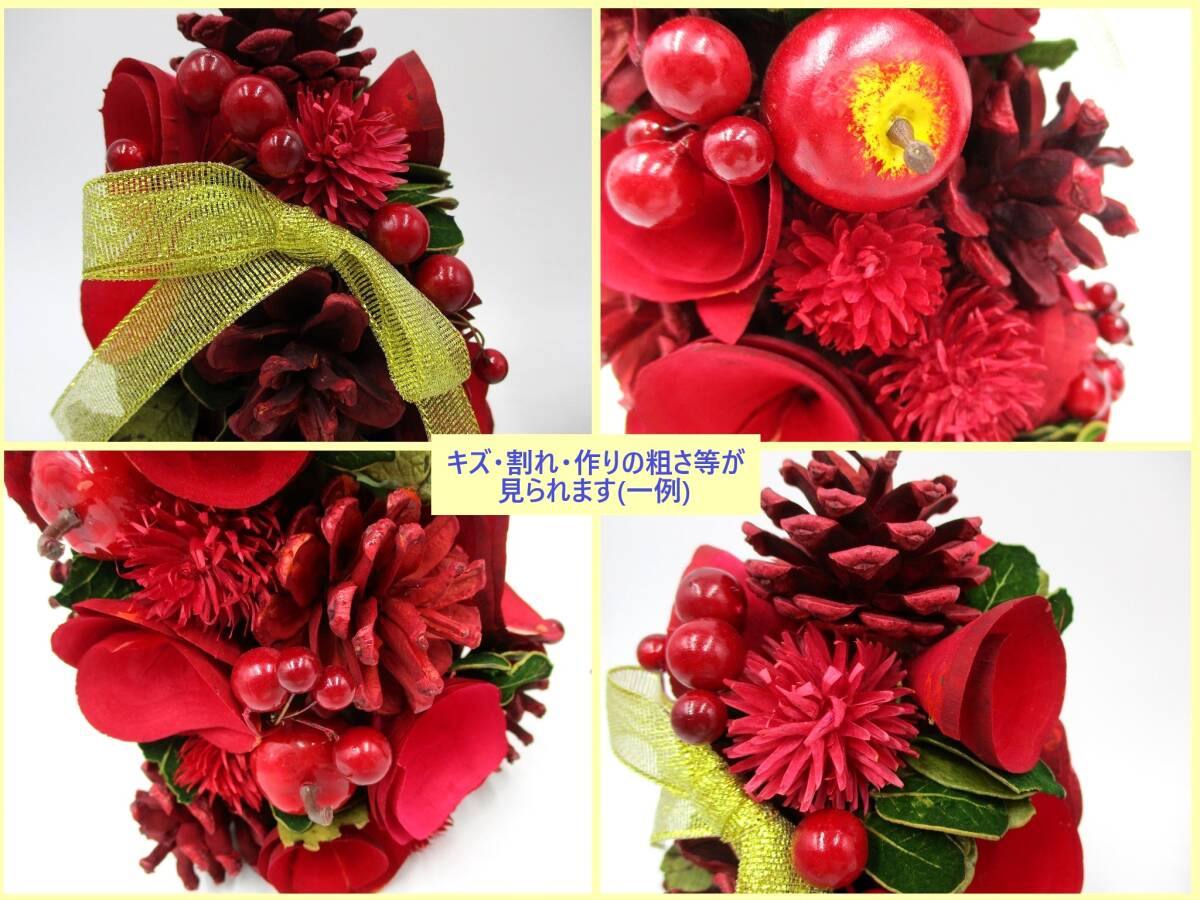 | 「訳あり」扱いの、未使用品。 倉庫での長期保存品です。 同じ雰囲気の置物 2個セット商品です。 コンパクトなサイズながら 落ち着いた色合いで人目をひくツリーです。 赤リンゴや松ぼっくり、 ベリーやお花があしらわれています。 主にドライした自然素材が使用されています。 このまま飾っていただくのはもちろん、 ご自身でお好みにデコレーションして、 オリジナルのクリスマスツリーを 作っていただくのも楽しいと思います。 (参考:画像10・左) 自然素材のため、長期のご使用に伴い、 色あせ・材質変化等が生じる場合があります。 また、配送時の振動などにより、 造形の多少の崩れ・部品外れ・ 装飾に欠け等が生じる場合がありますが、 この点に関しましては 当方はサポートをいたしません。 あらかじめご了承下さい。 この点より「訳あり」として出品いたします。 以下の商品説明をよくご覧になってから、 ご検討をお願いいたします。 神経質な方、完品をご希望の方は、 御入札をご遠慮ください。 【商品内容】 小さな 可愛い 赤リンゴの クリスマス ツリー 2個セット [基本的な仕様] *個々のお品で多少の差異あり ・サイズ: 径15cm・高さ23cm程度 (装飾の付き方により多少の差異あり) *サイズ対比に、 コーヒーボトル小缶を置いています 参考にどうぞ(参考:画像8) ・重量: 200g程度 ・ツリーの主な素材: 木の実・樹皮・ドライフラワー *土台は 発泡スチロール等 *ドライした自然素材を主に使用し すべて1つずつ手作りしています ・その他: 海外製/メーカー等の詳細は不明 ライト等の装飾は付いておりません 装飾品の付き方によりましては、 台座が浮いた状態になっている 場合があります(参考:画像9) ・備考: 商品配送時の振動・衝撃等で 部品外れ等の破損が生じた場合は、 木工用ボンドや手芸用グルーガンで 簡単に修繕可能です *状態は、画像にてご確認ください *実際の商品の色味と異なる場合があります *記載の商品サイズは、 当方の定規にての大まかな寸法です 実際のサイズとは異なる場合があります *画像は 基本的には 今回お送りするお品を撮影していますが 画像10・左のみ撮影用を使用しています 【状態等】 ・未使用品です。 ・海外製のため、 装飾品の固定・接着剤の付着など、 全体的に作りに粗さがある場合があります。 (参考:画像2~7、他) ・装飾品に、キズ・欠け・凹み等がある 場合があります。 ・自然素材のため、長期のご使用に伴い、 色あせ・材質変化等が生じる場合があります。 また、配送時の振動などにより、 造形の多少の崩れ・部品外れ・ 装飾に欠け等が生じる場合がありますが、 この点に関しましては 当方はサポートをいたしません。 ・保管時に使用していた 防虫・殺虫剤の臭いがする場合があります。 苦手な方、気になさる方は、 風通しの良いところで 臭いを飛ばしていただくことをお勧めします。 ・専用の箱などは、ありません。 紙・緩衝材等で簡易的に保護し、 再利用箱に入れて発送をいたします。 (参考:発送状態・画像10・右) 以上の点より「訳あり」として出品いたします。 ご承知いただける方のみ、 ノークレーム・ノーリターンにてご検討下さい。 | ||