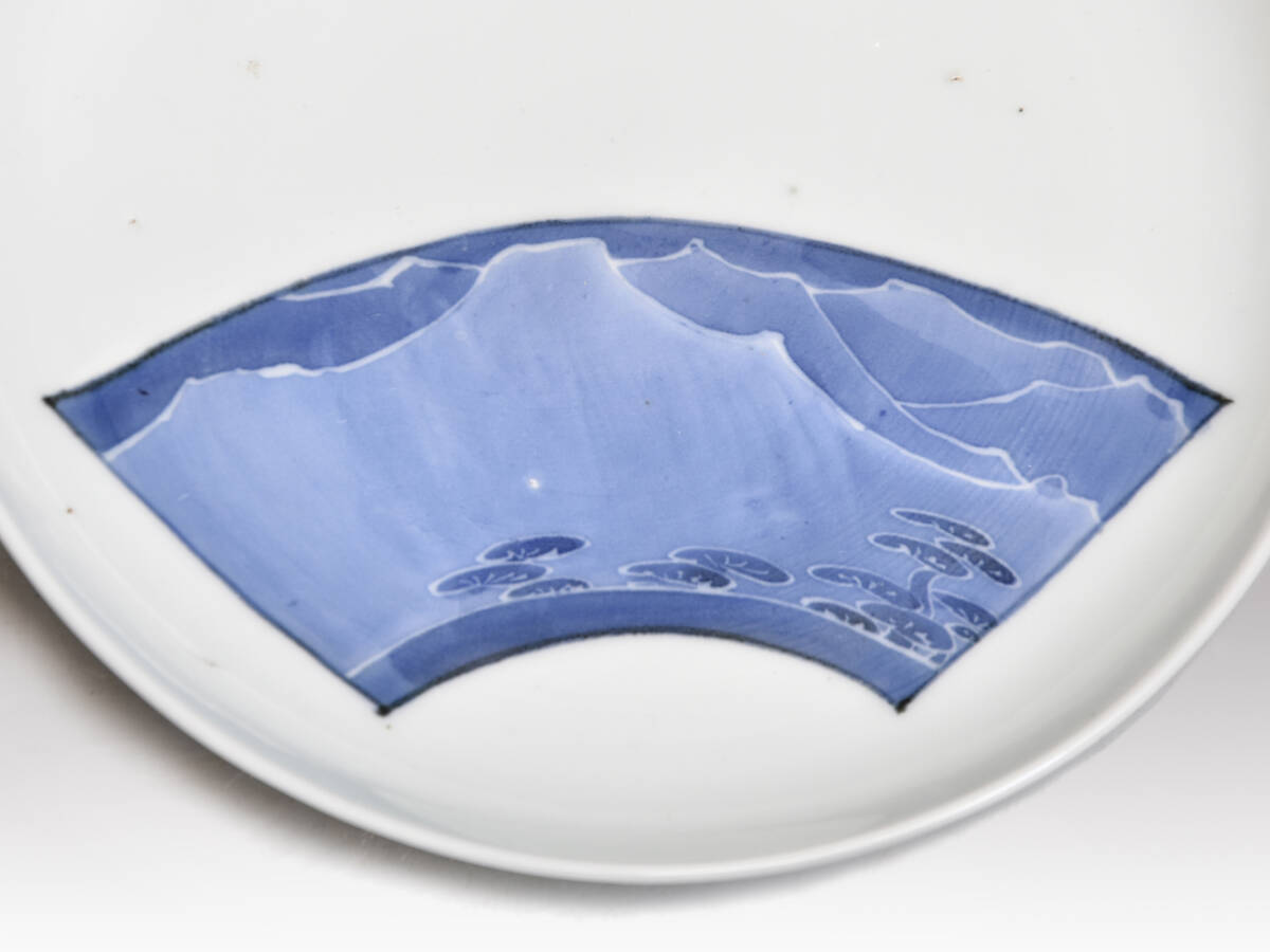 藍九谷様式 扇面図中皿 桐箱 古陶磁器 古伊万里 伊万里 有田焼 藍九谷 江戸時代初期 |