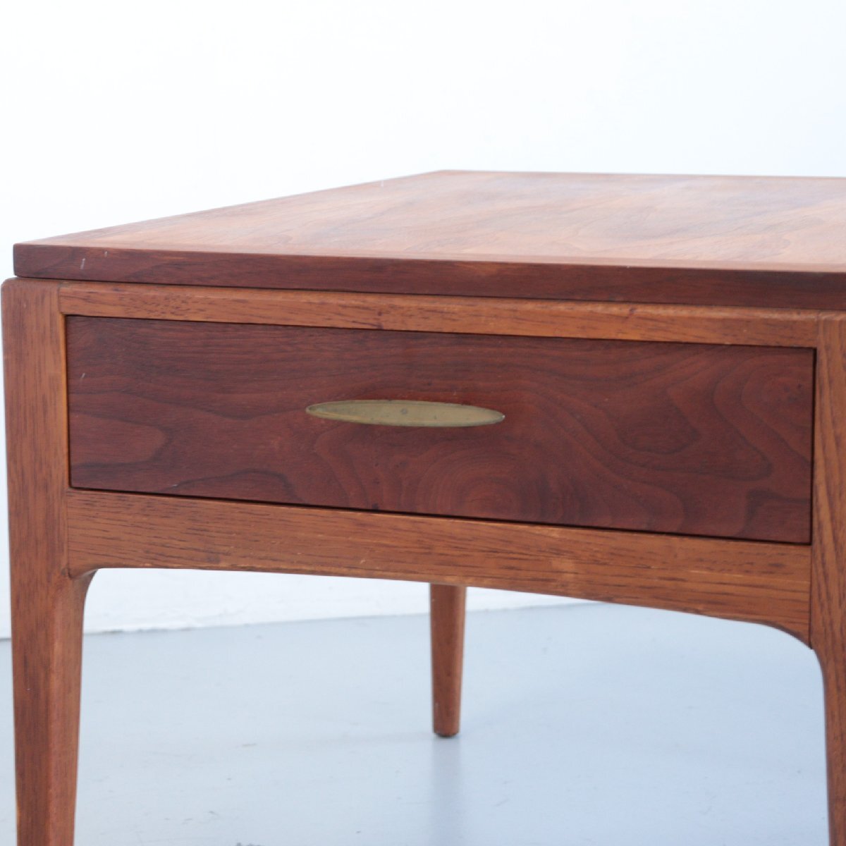商品説明 explanation | ミッドセンチュリー期を代表する家具メーカー「LANE」社のコーヒーテーブルです。 1964製のモノで、綺麗なウォルナット材が使用されています。 引き出し付きでサイズ感も良く、ベッドサイドやリビングなど、置き場所を選びません。 ミッドセンチュリー家具は、世界的な人気により年々見つかりづらく、価格が高騰しています。 この機会にご自宅や店舗にいかがでしょうか。 ※天板に若干気になる輪染みがあります。(写真3枚目) |