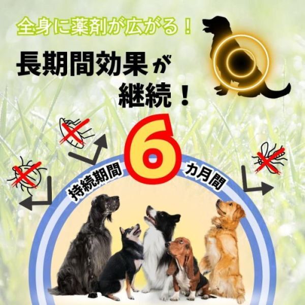 | 商品説明 | ・愛犬にやさしいフェノトリンとピロプロキシフェンを配合、ノミ・マダニをしっかり駆除し、蚊も寄せ付けない。 ・約1週間で効果があらわれはじめ、約6ヶ月間持続。 ・抗菌バックルを使用。 <使用方法> 犬または猫の首に本品1個を取り付けてください。 使用直前に開封し、あまりきつくならない程度(首と本品のすき間に指が2〜3本入る程度)首につけてください。 ※バックルを通してあまった部分は、動物に傷をつけないよう注意して、約5〜7cm余裕をもたせ、ハサミ等で切り取ってください。 生産地:日本 サイズ:パッケージサイズ:W90×H165×D18mm/重量39g 素材<成分> フェノトリン(ピレスロイド系)、ピリプロキシフェン(ジフェニルエーテル系) |