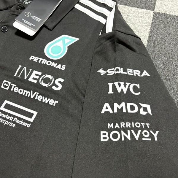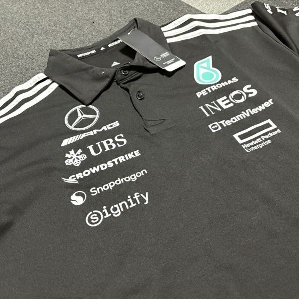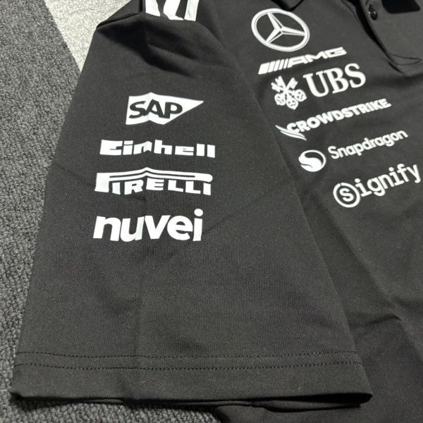 ●新品使用未開封 2025 メルセデス AMG ペトロナス F1 ポロシャツ ブラック になります。 ●サイズは『 Lサイズ 』になります。 身幅:55cm 着丈:73cm 誤差はあります。(平置き水平測定) ●生地&プリントともに質感のあるとてもいいシャツです。 ・こちらはオフィシャルではありませんのでご注意ください。