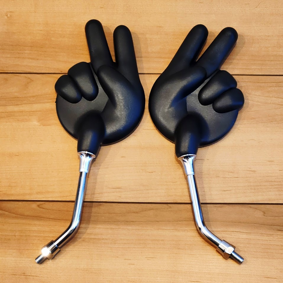 KJT じゃんけんミラー 黒 8mm  正ネジ ブラック チョキ ピース 左右セット [浏览原始页面]