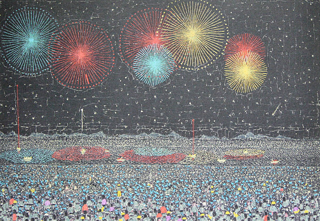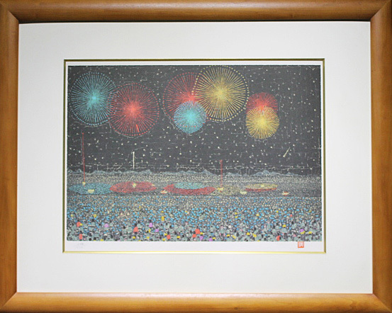 ■山下清【長岡の花火】リトグラフ 印章有り エディション有り