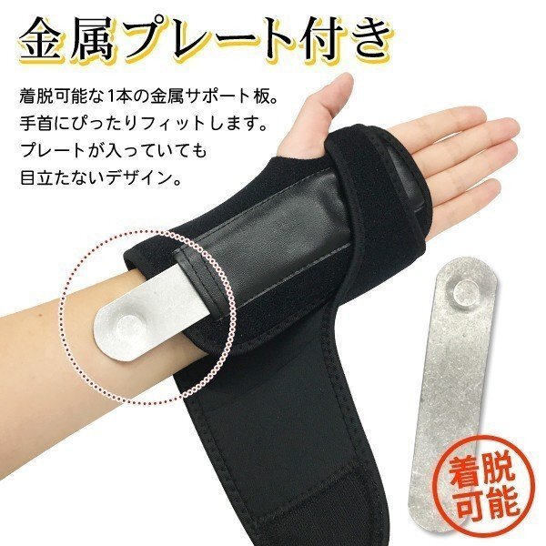| 男女兼用 フリーサイズ 着脱式金属プレート付き 手首サポーター 左手用 |